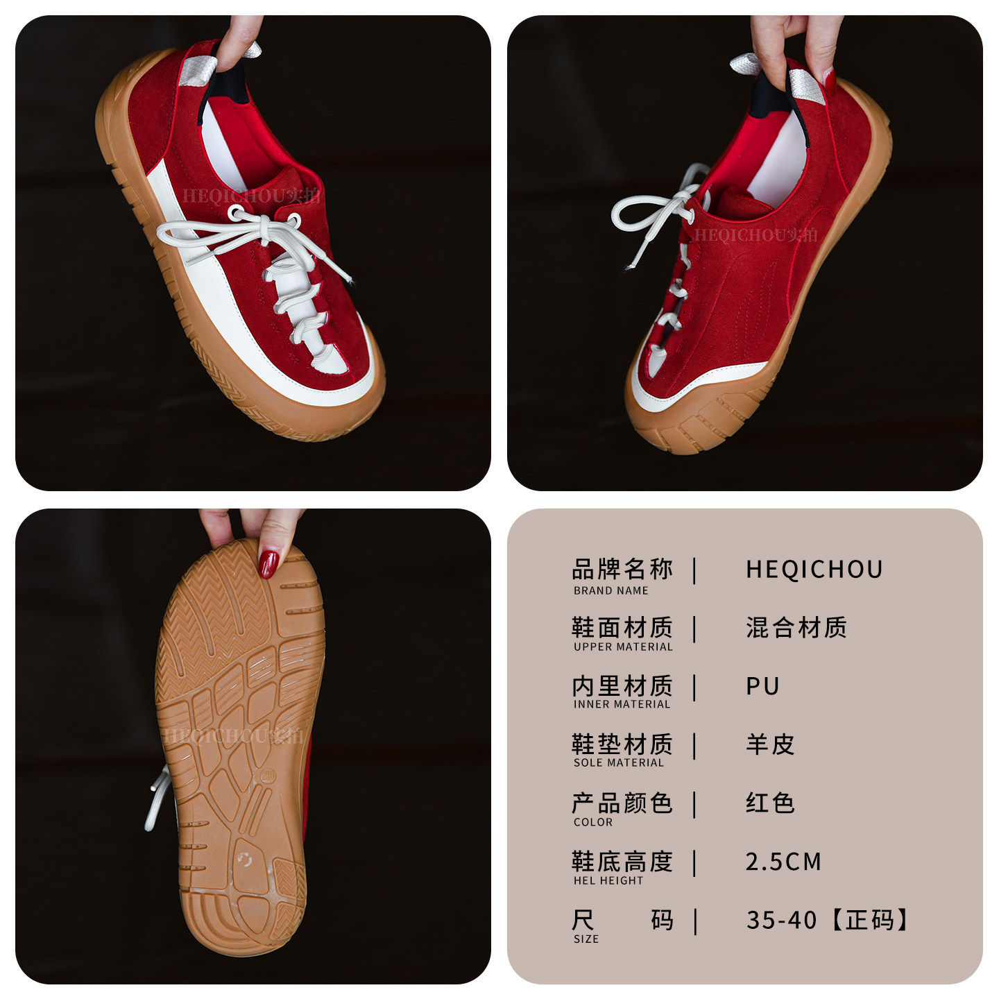 📚 何其丑羊皮圆头系带德训鞋女新款厚底百搭户外运动休闲鞋平底女鞋