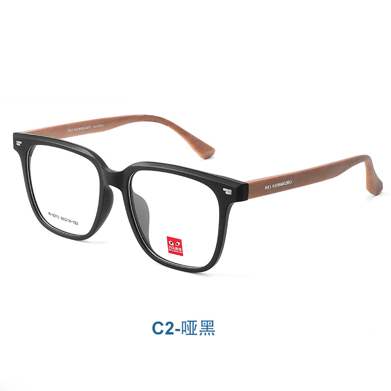 📚 川久保玲大号脸方形男款眼镜木纹眼睛框架可配近视度数防蓝光9270
