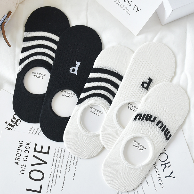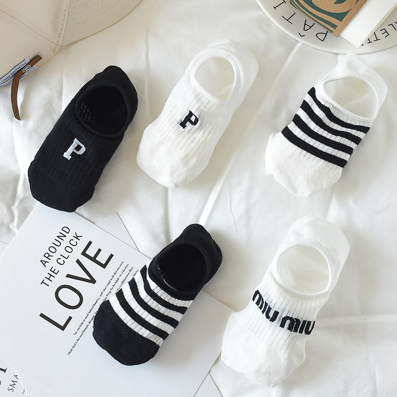 📚 夏季薄款袜子女船袜棉袜浅口隐形袜韩系黑白字母P硅胶防滑不掉跟