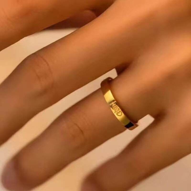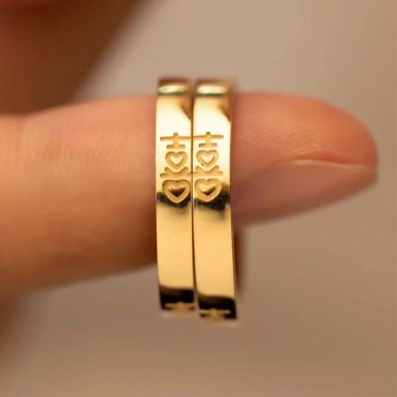 📚 仿真结婚对戒一对情侣款双喜字戒指黄金色仿真时尚气质新款活口女