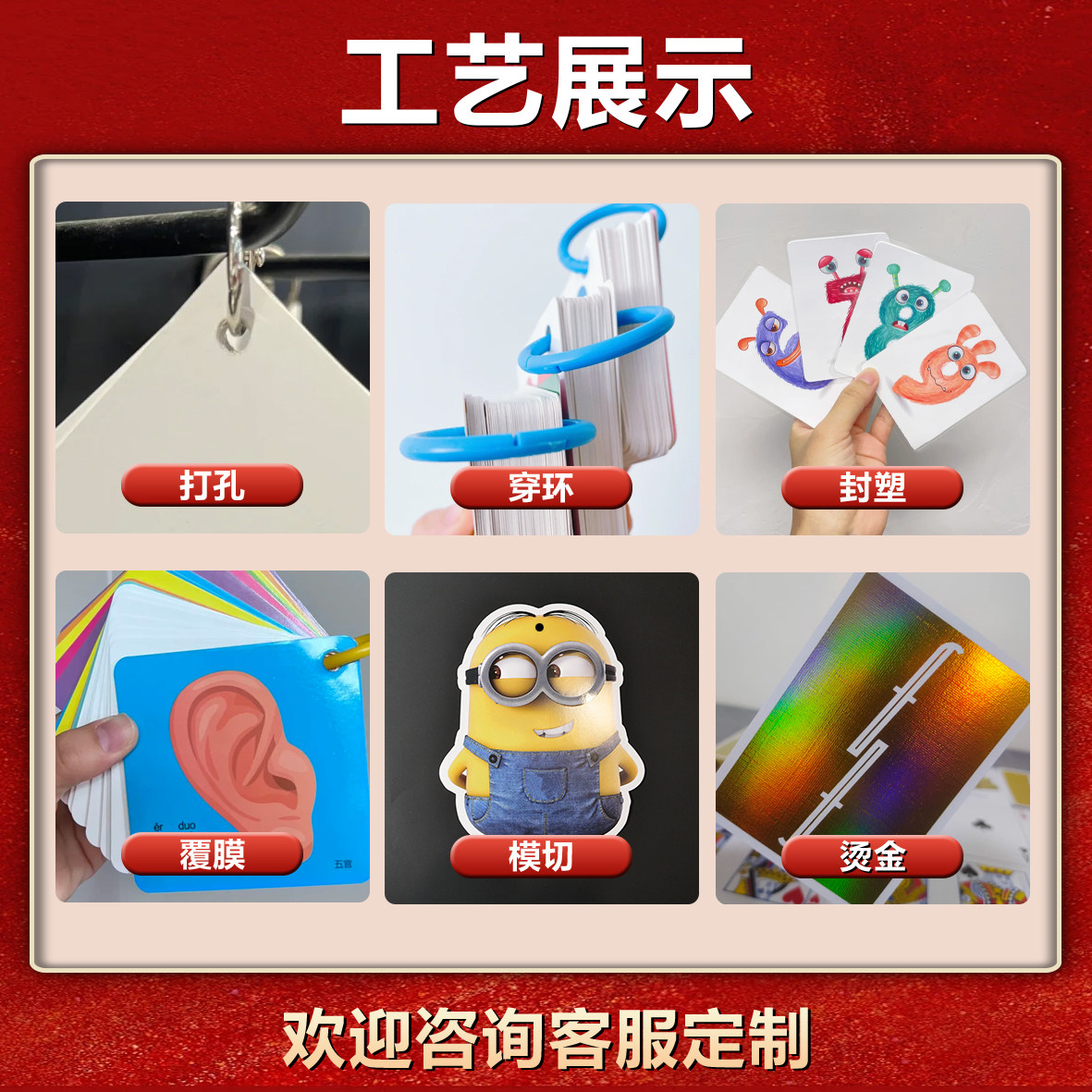 📚 活页环套装卡片定做识字卡片定制单词卡片闪卡定制过塑封塑膜卡片过胶记忆卡卡仔打印装订PVC卡片册宝宝启蒙
