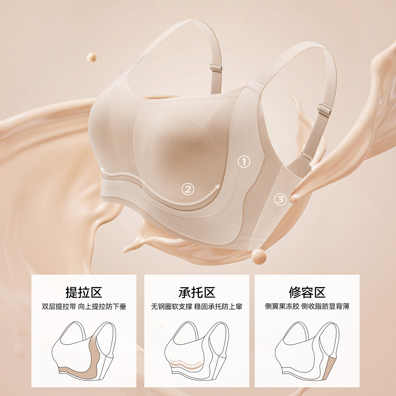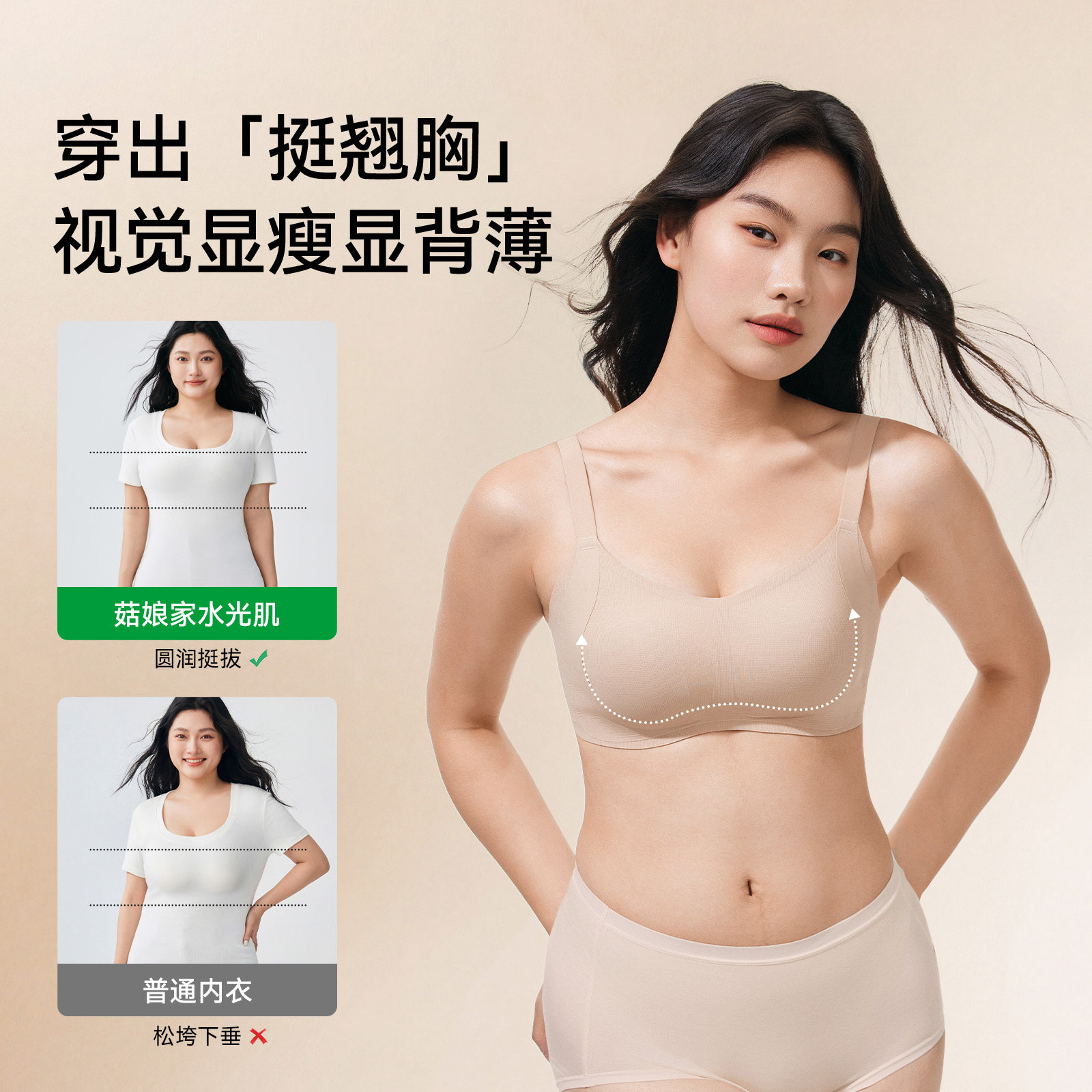 📚 菇娘家水光肌内衣提拉隐形无痕大胸显小承托聚拢防下垂女文胸新款