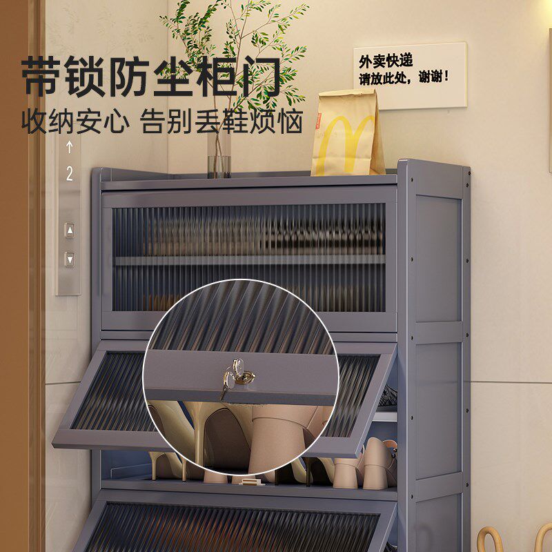 📚 鞋架多层家用门口小窄带锁鞋柜防尘楼道走廊室外防盗收纳柜置物架