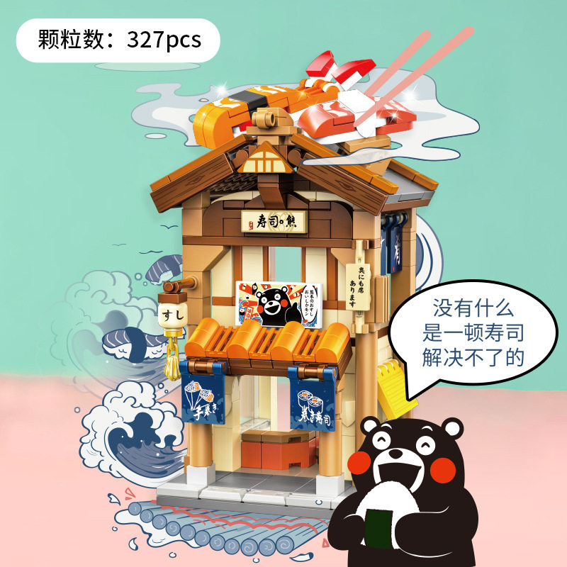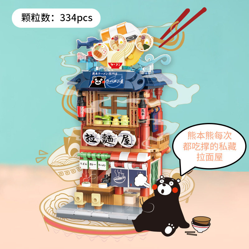 📚 积乎熊本熊拉面馆寿司店街景积木益智拼装桌面摆件儿童玩具