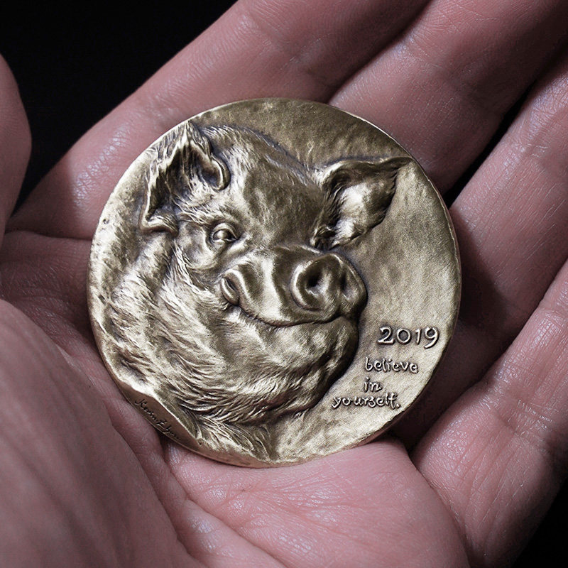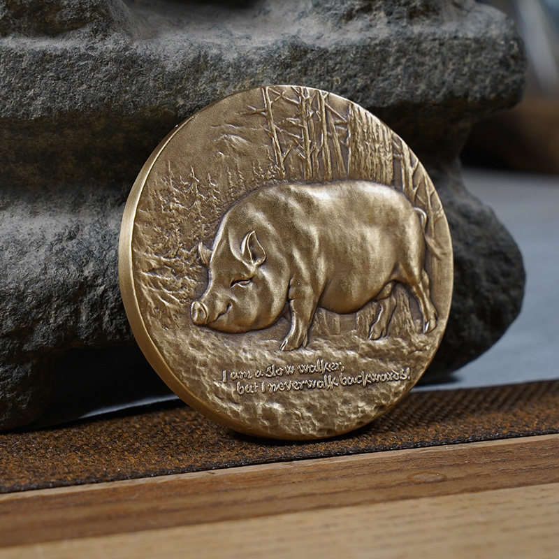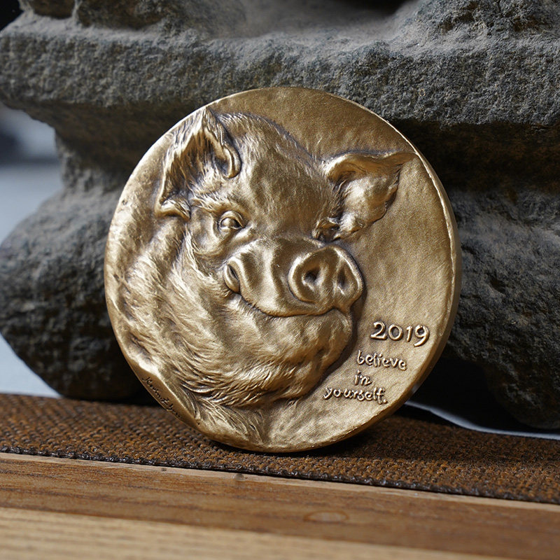 📚 新中式猪年浮雕生肖系列逍遥猪纪念币章文创现货精品礼品限量收藏