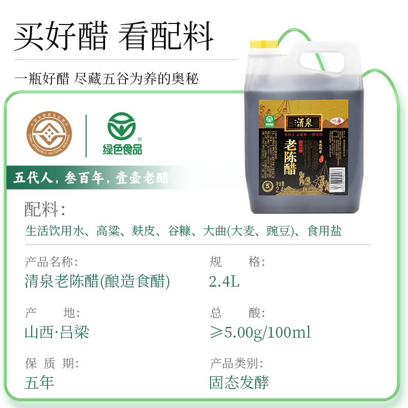📚 山西清泉老陈醋桶装家用食用凉拌饺子2.4L纯粮食酿造调味醋无添加