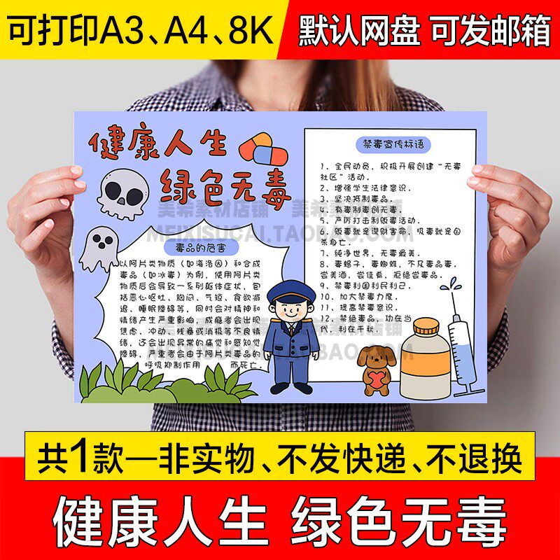 📚 健康人生绿色无毒手抄报中小学生电子小报远离毒品禁毒a4a38k模板