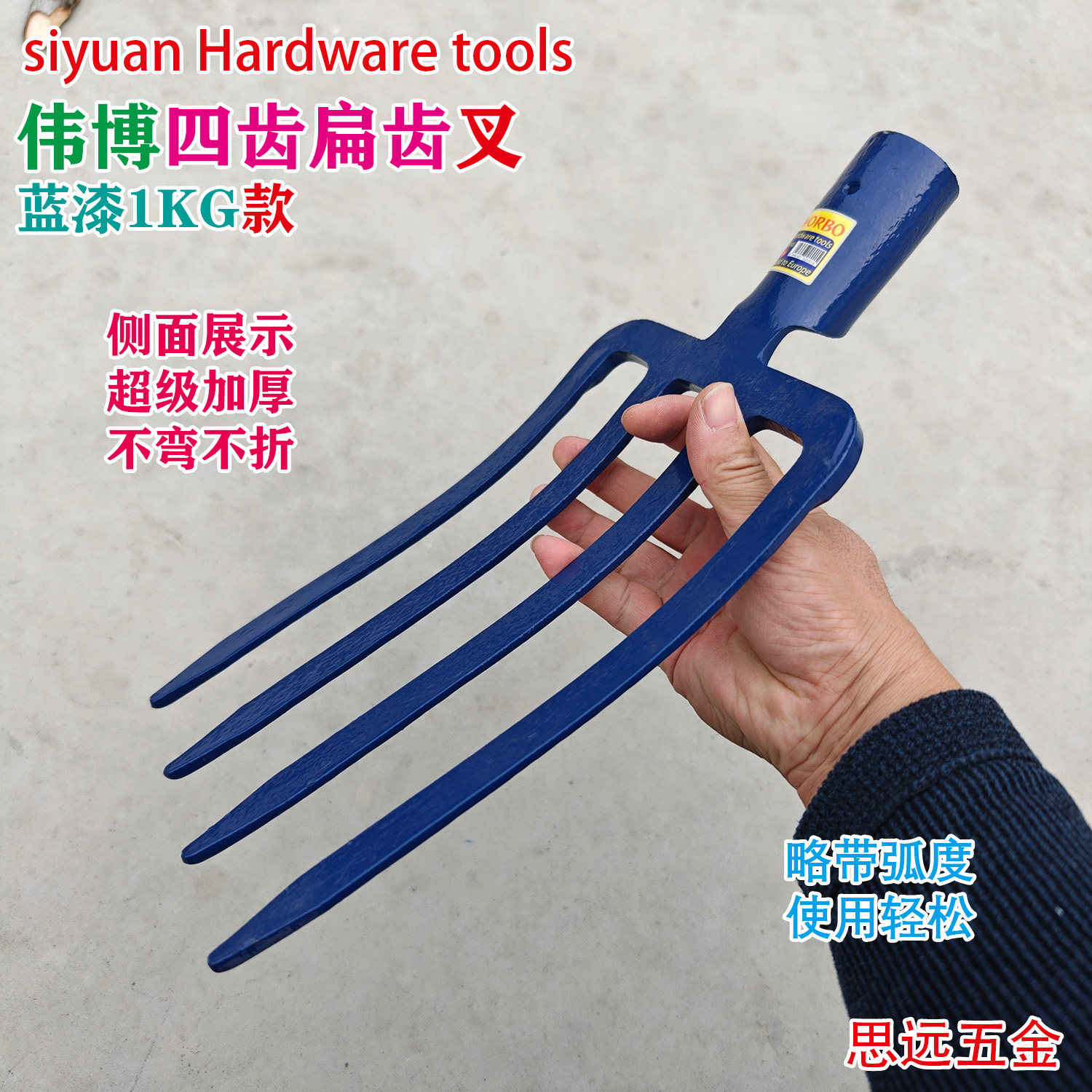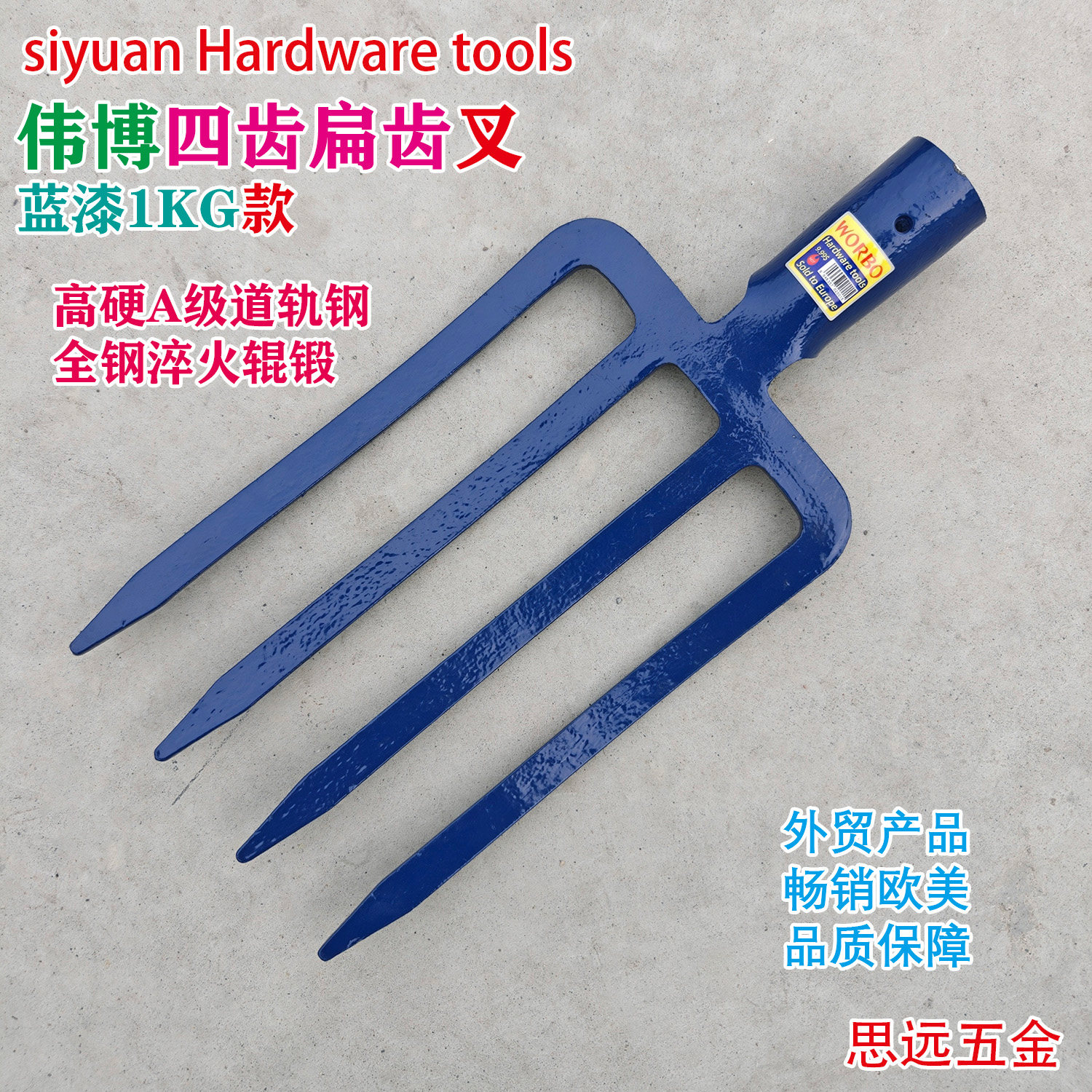 📚 外贸蓝漆扁齿叉加厚加重道轨钢淬火一体钢叉翻地叉松土叉挖葱挖蒜