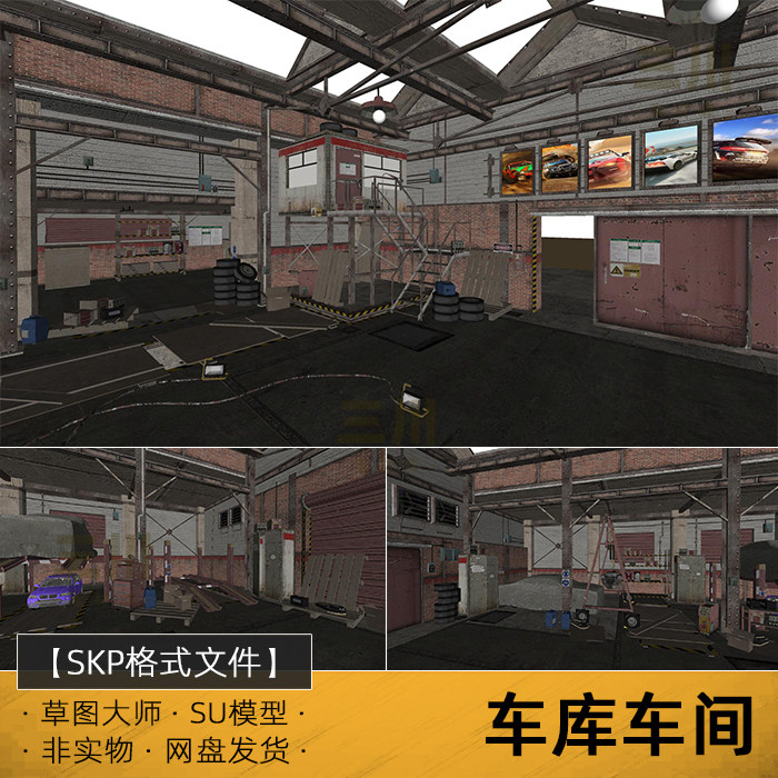 📚 SU模型车库车间草图大师废弃厂房仓库设备工业建筑sketchup素材
