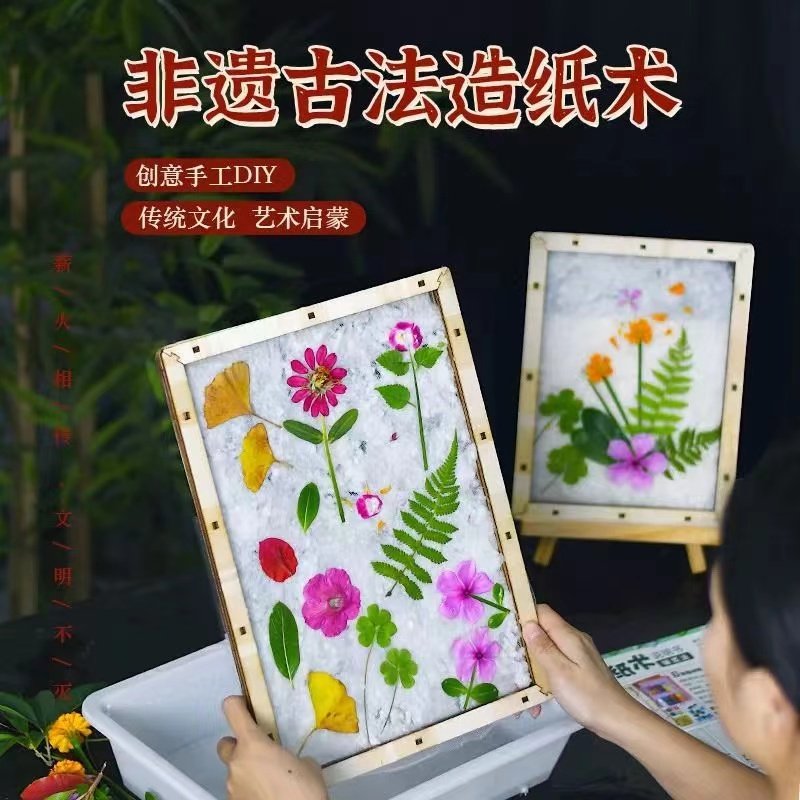 📚 植物造纸胶水古法造纸术套装手工diy材料包花草纸水盆脱水干纸浆