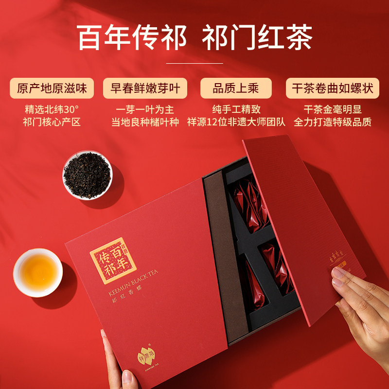 📚 百年传祁丨祥源茶正宗特级祁门红茶香螺中秋送礼端午年货礼盒192g
