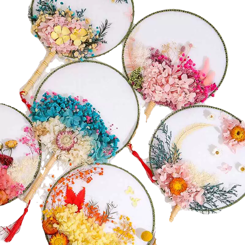 📚 干花团扇diy材料包永生花手工贴花扇子自制新年春节创意礼物活动