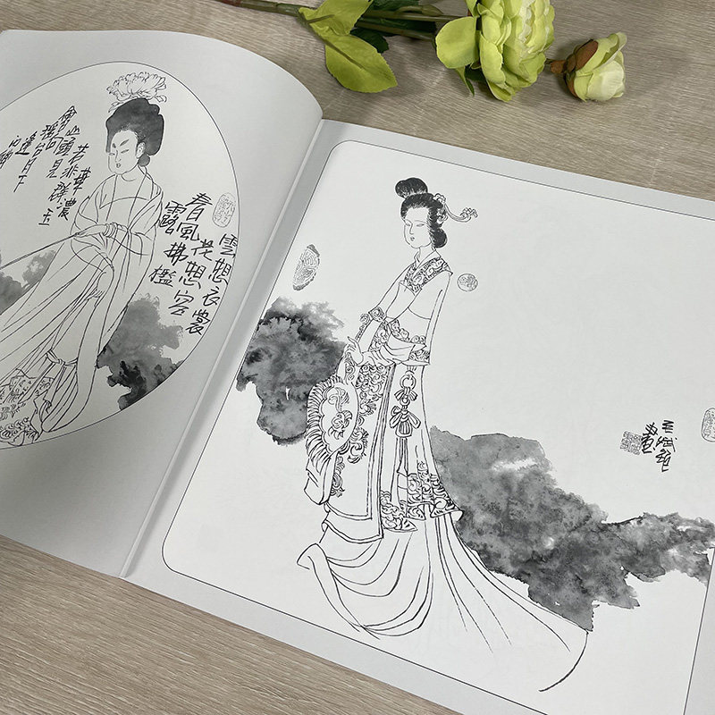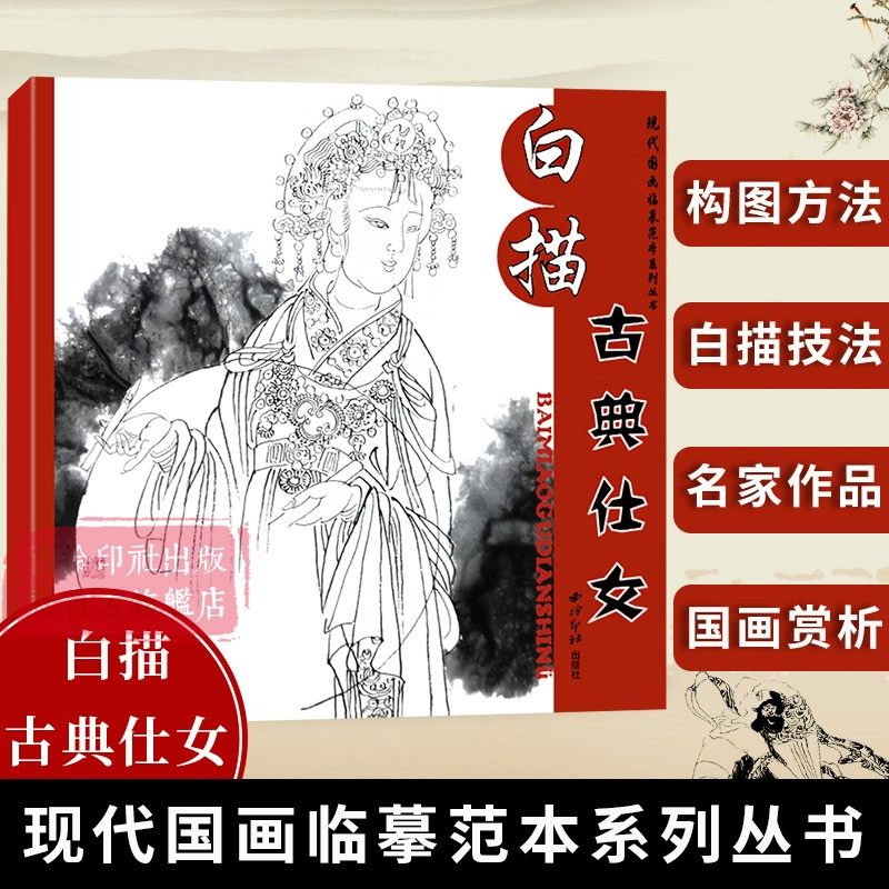 📚 白描古典仕女 现代国画临摹范本系列丛书 国画技法讲解传统工笔画稿底稿线描绘图谱图案临摹画谱 初学者绘画基础入门到精通教程书