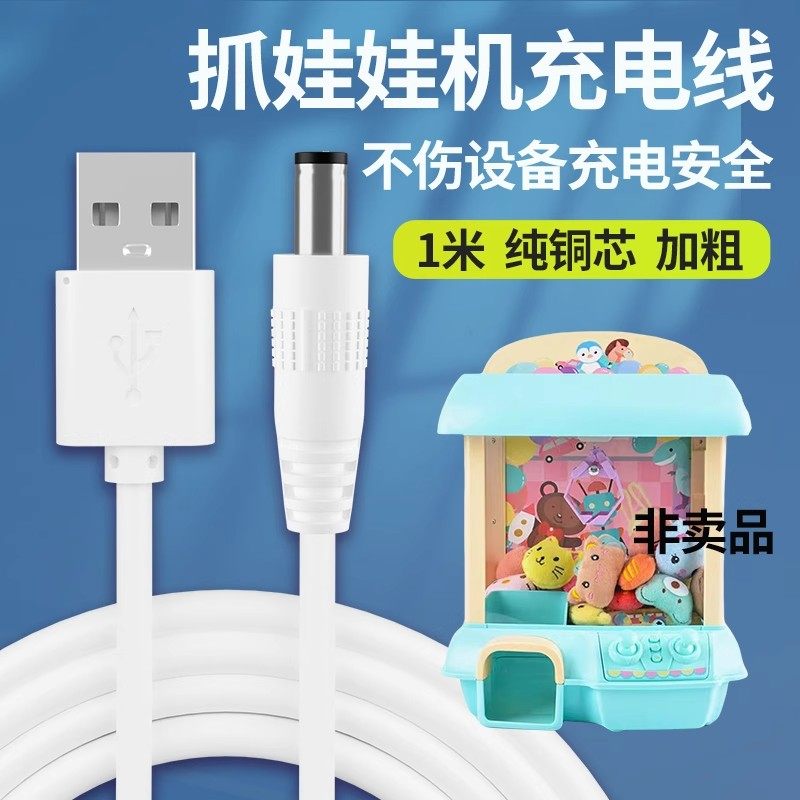 📚 儿童迷你抓娃娃机充电线器家用小型投币夹公仔玩具圆孔USB电源线