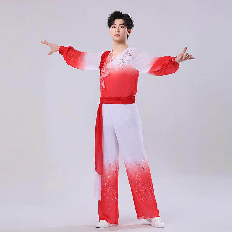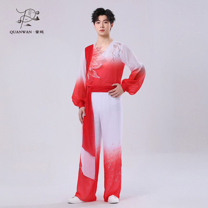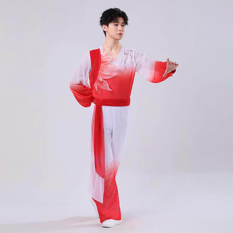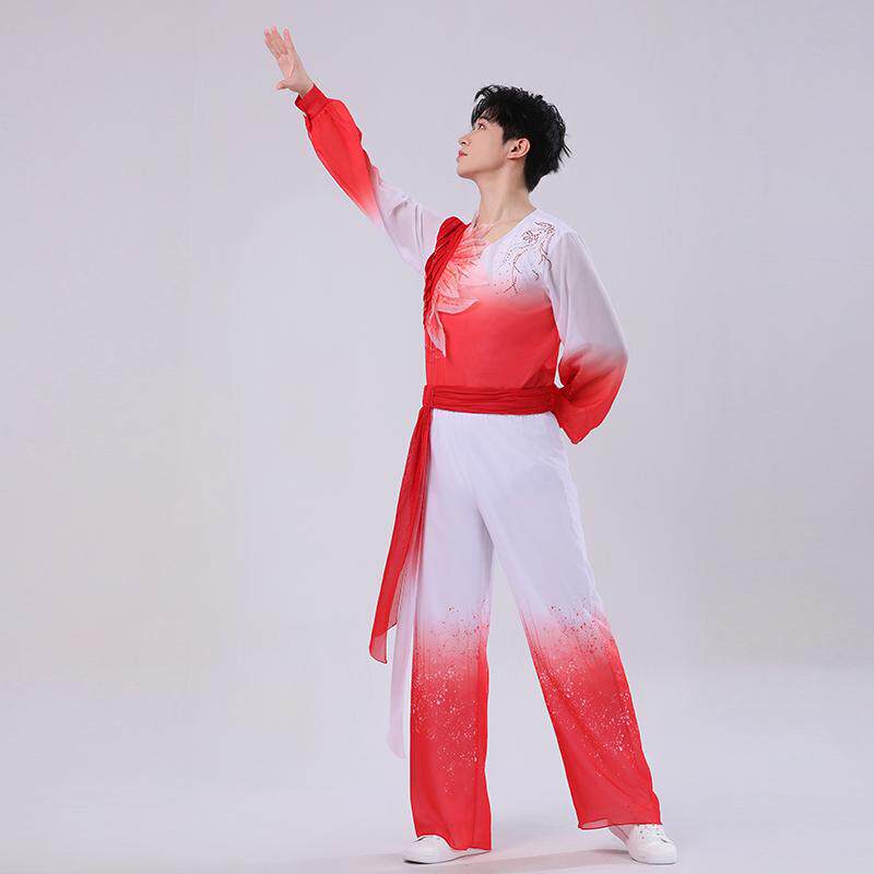 📚 繁花男女开场舞大摆裙红色男生出租伴舞演出服现代舞服装定制租赁
