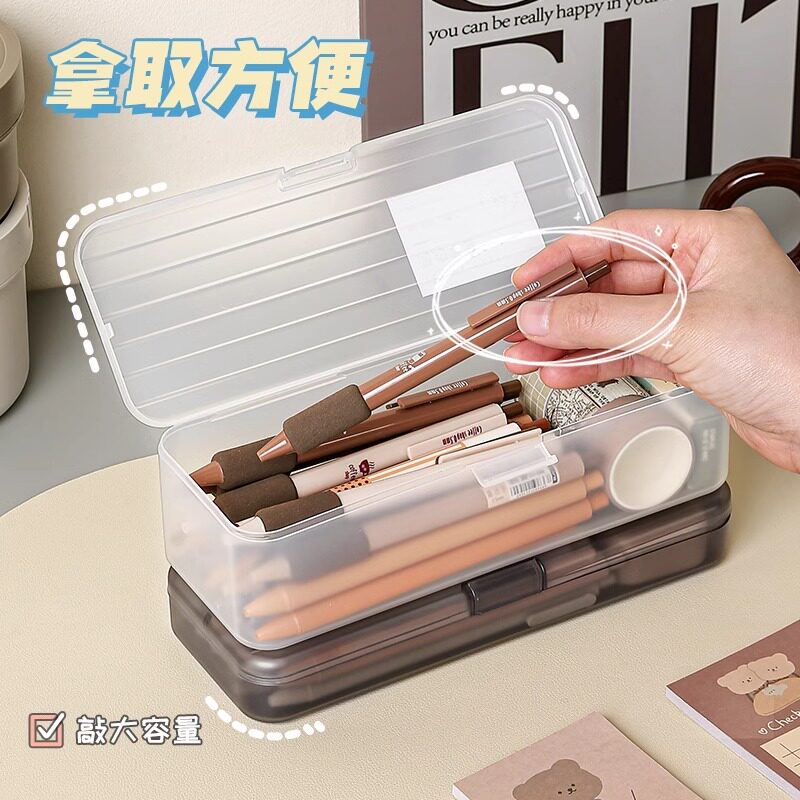 📚 透明收纳文具盒大容量盒子素描画笔蜡笔桌面铅笔盒长方形塑料盒