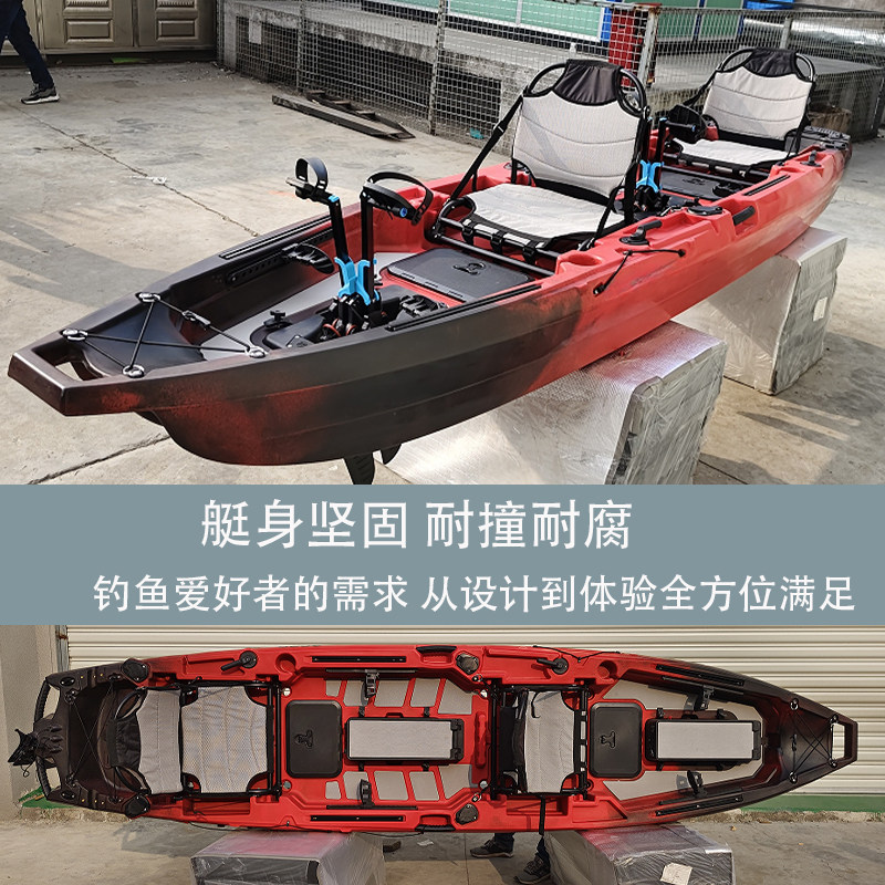 📚 厂家滚塑双人脚踏皮划艇钓鱼船塑料独木舟加厚路亚艇卡亚克kayak
