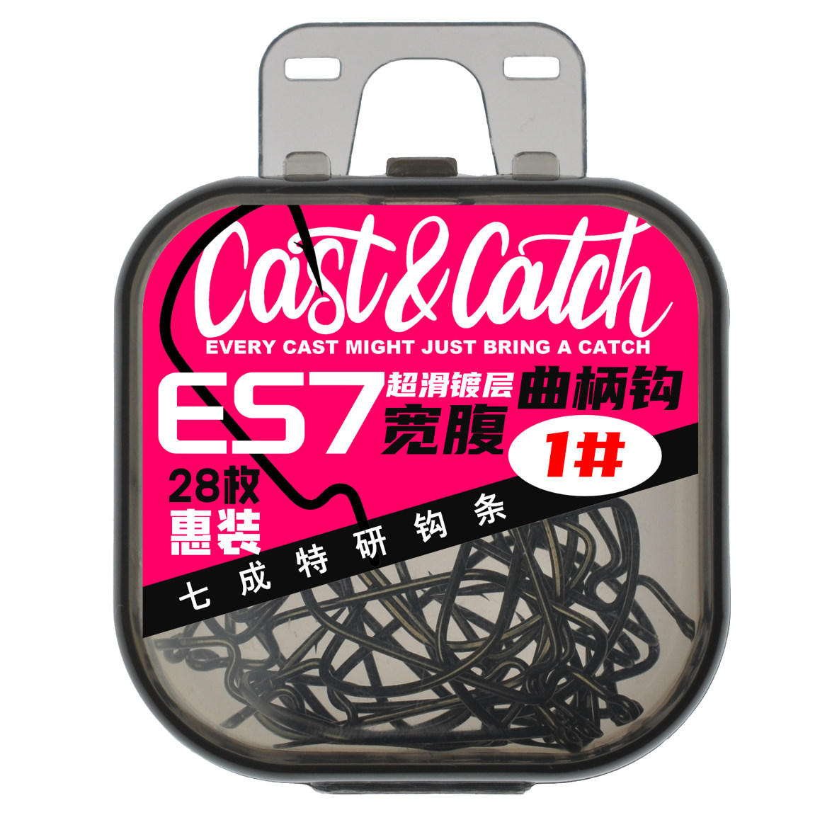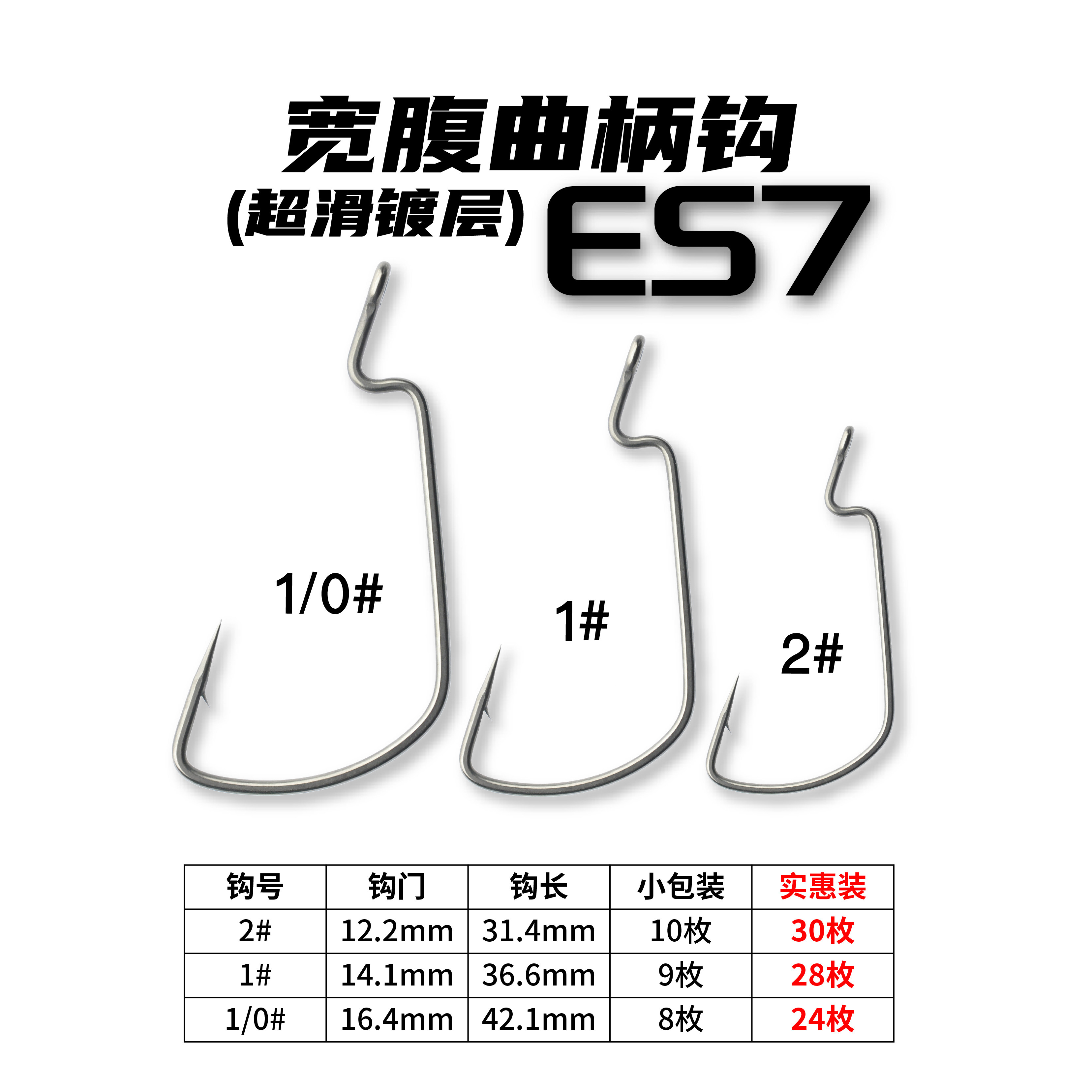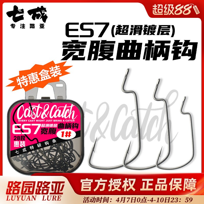 📚 Cast&Catch七成路亚宽腹曲柄钩ES7软饵黑坑倒刺鲈鱼防脱倒钓鱼钩