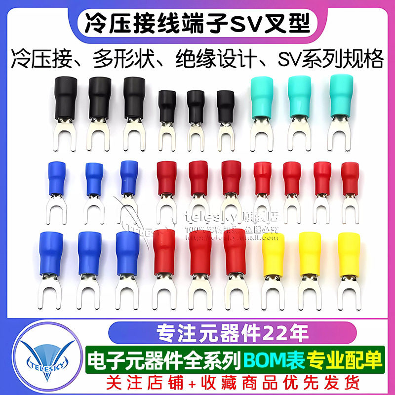 📚 冷压接线端子SV3.5叉形U型Y型绝缘插片插簧连接器接头铜头SV1.25