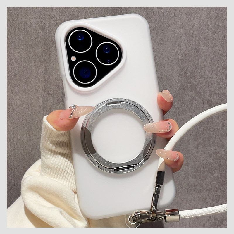 📚 白色二合一软硬双层保护套适用华为P80手机壳Pura70新款360金属旋转支架Pura80Pro硅胶P60防摔外壳P70创意女