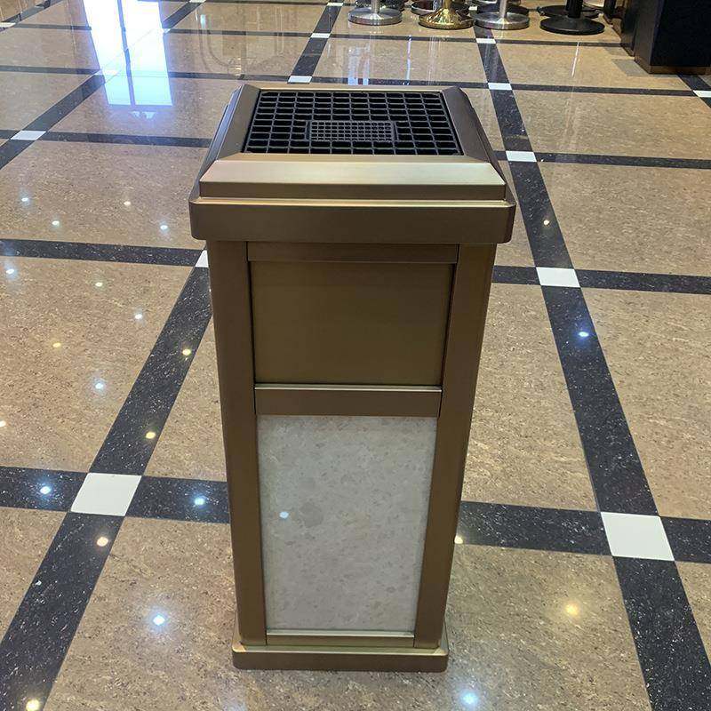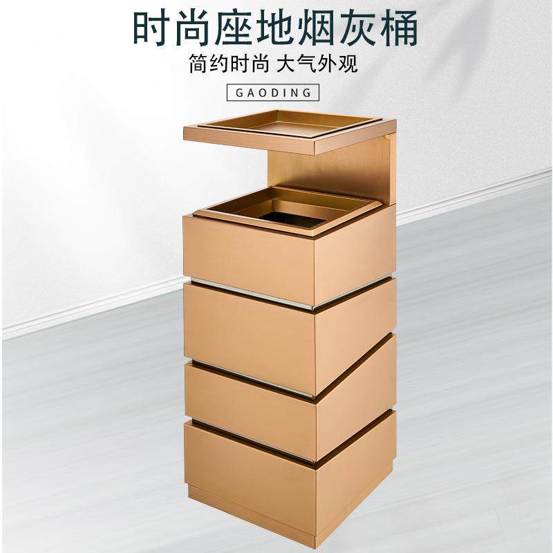 📚 黑金玫瑰金不锈钢座地烟灰桶室内立式垃圾桶酒店商场电梯口走廊