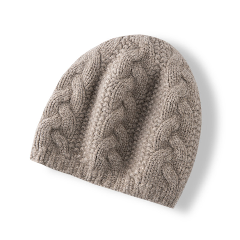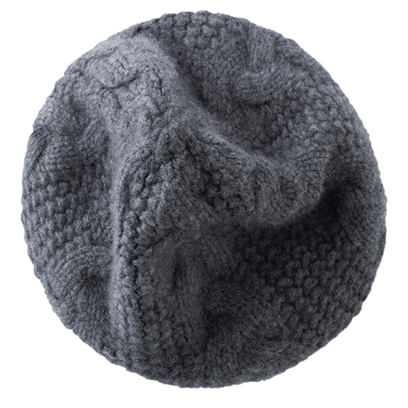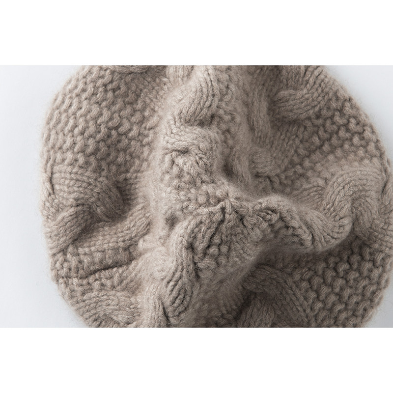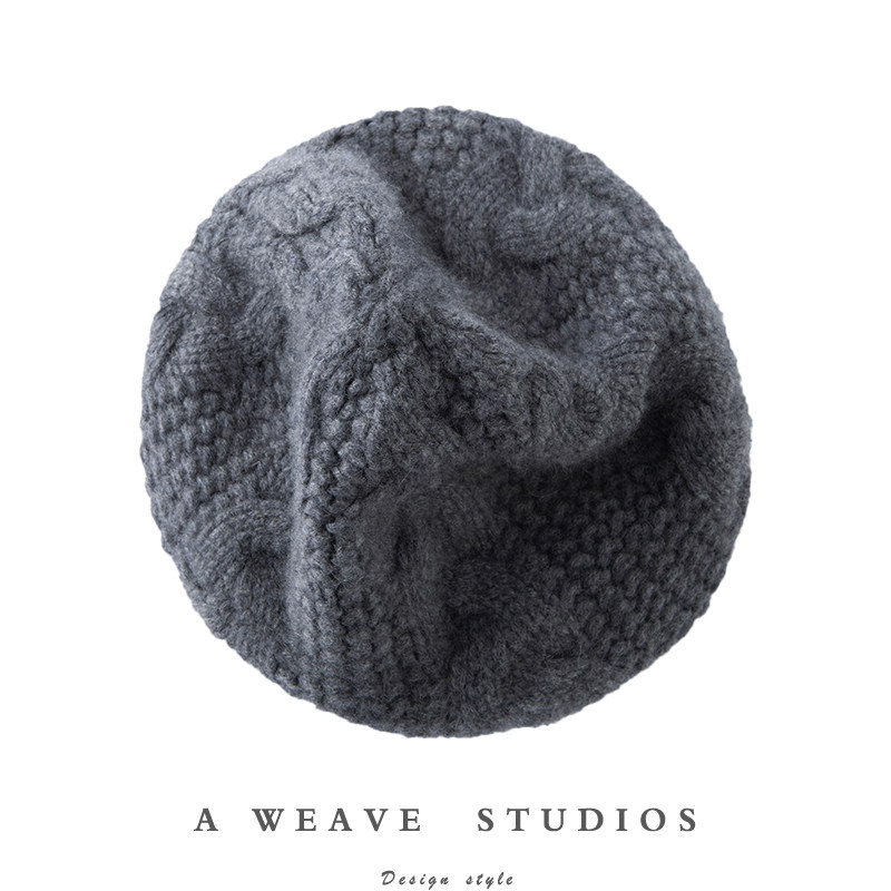 📚 低调优雅~立体绞花编织纯山羊绒贝雷帽子女冬季加厚针织帽子