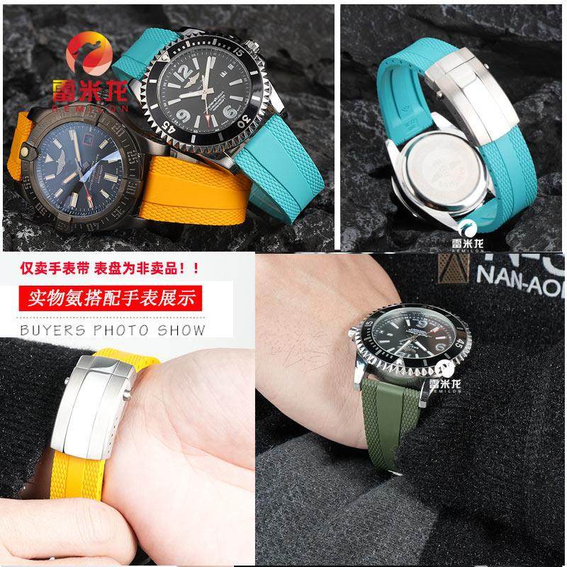 📚 适配Breitling百年灵品质橡胶手表带超级海洋挑战者复仇者黑鸟侦察机海狼男蒂芙蓝潜水硅胶折叠扣表带配件