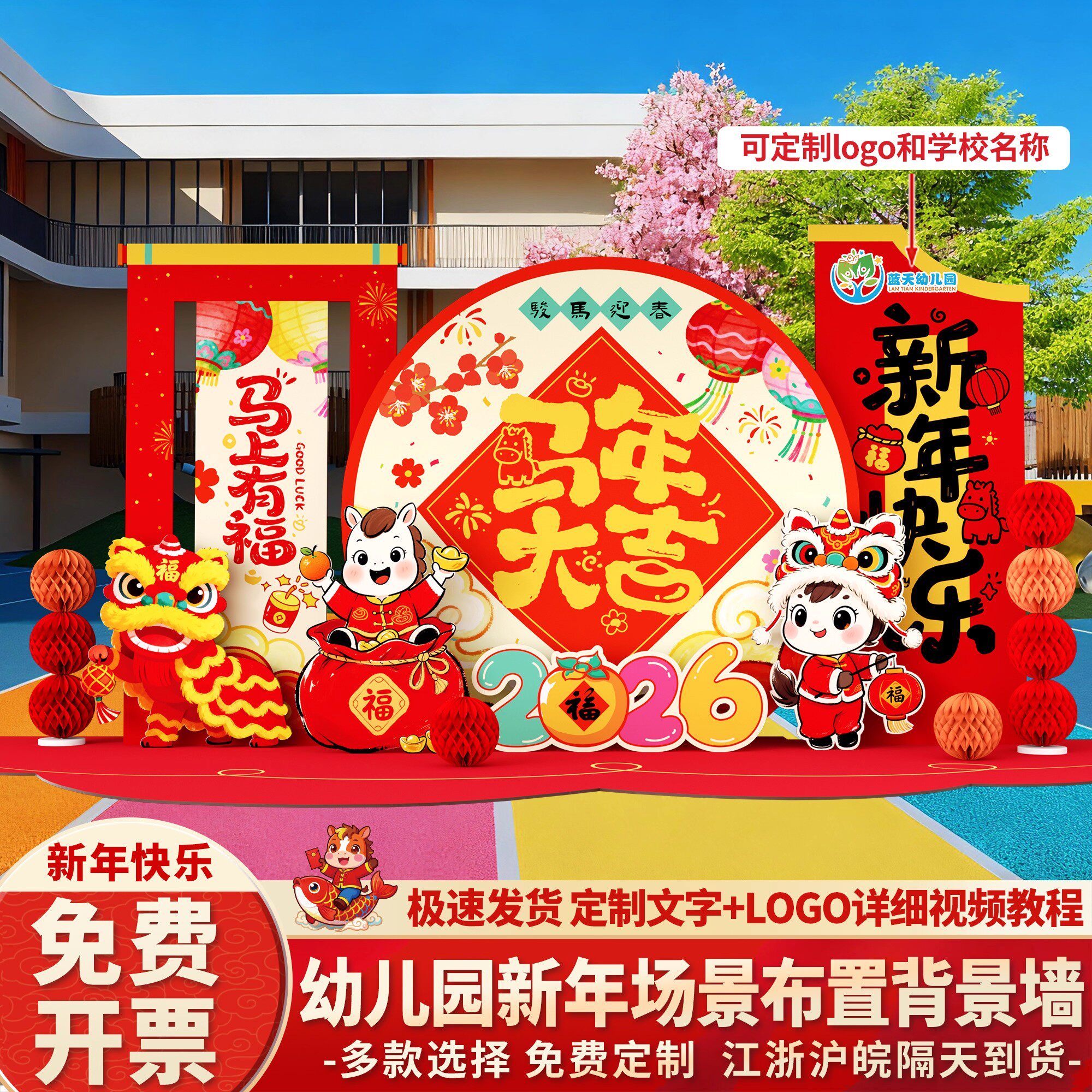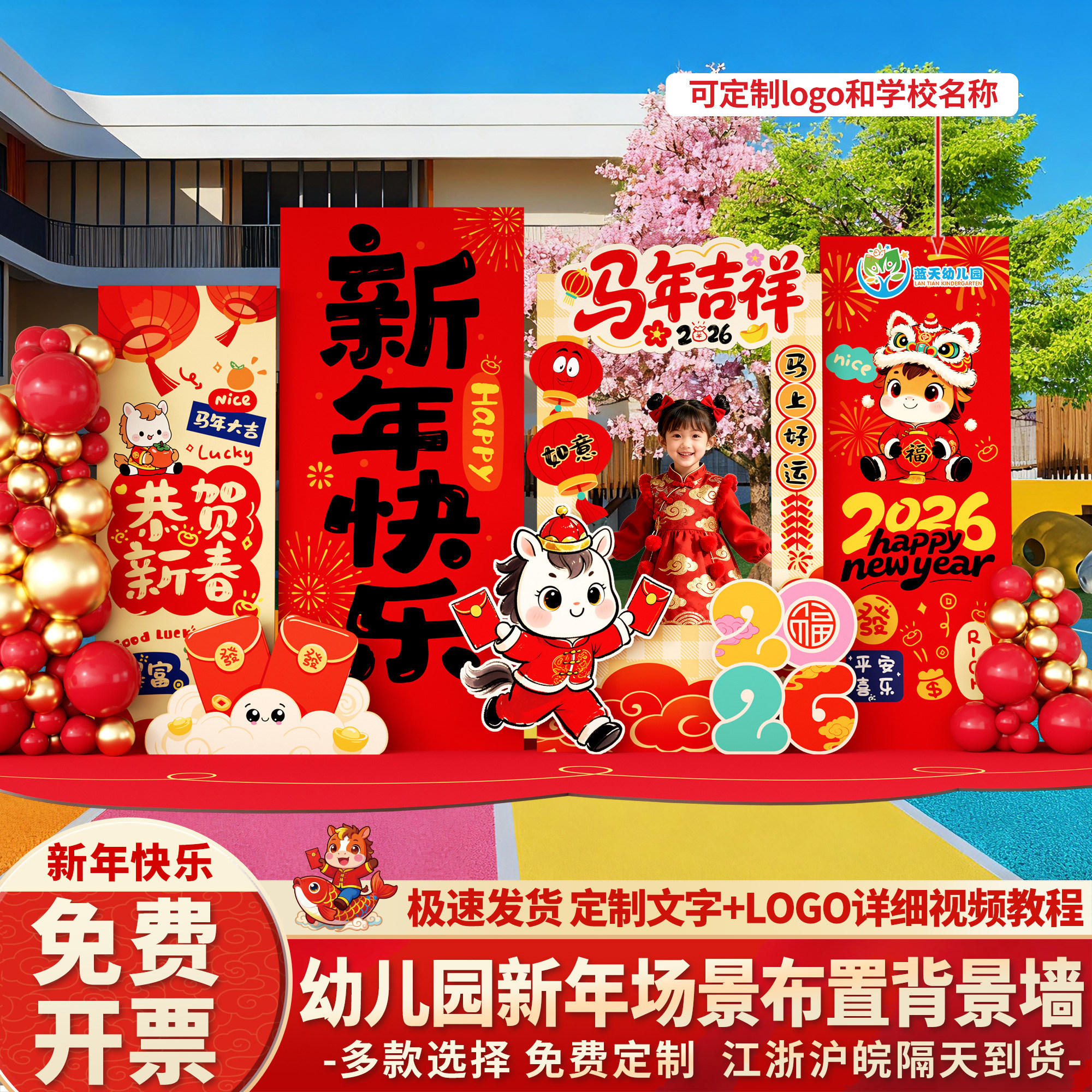 📚 幼儿园开学元宵节场景布置装饰2026教室马年拍照背景墙气氛kt板