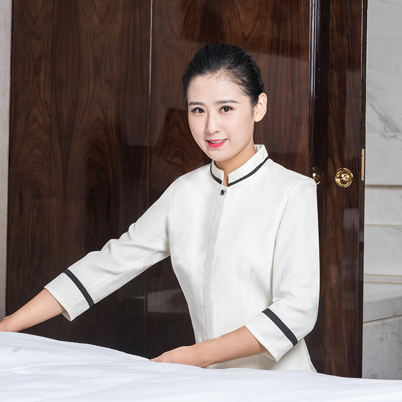 📚 保洁服短袖夏季男女款酒店宾馆客房服务员物业清洁工作服白色制服
