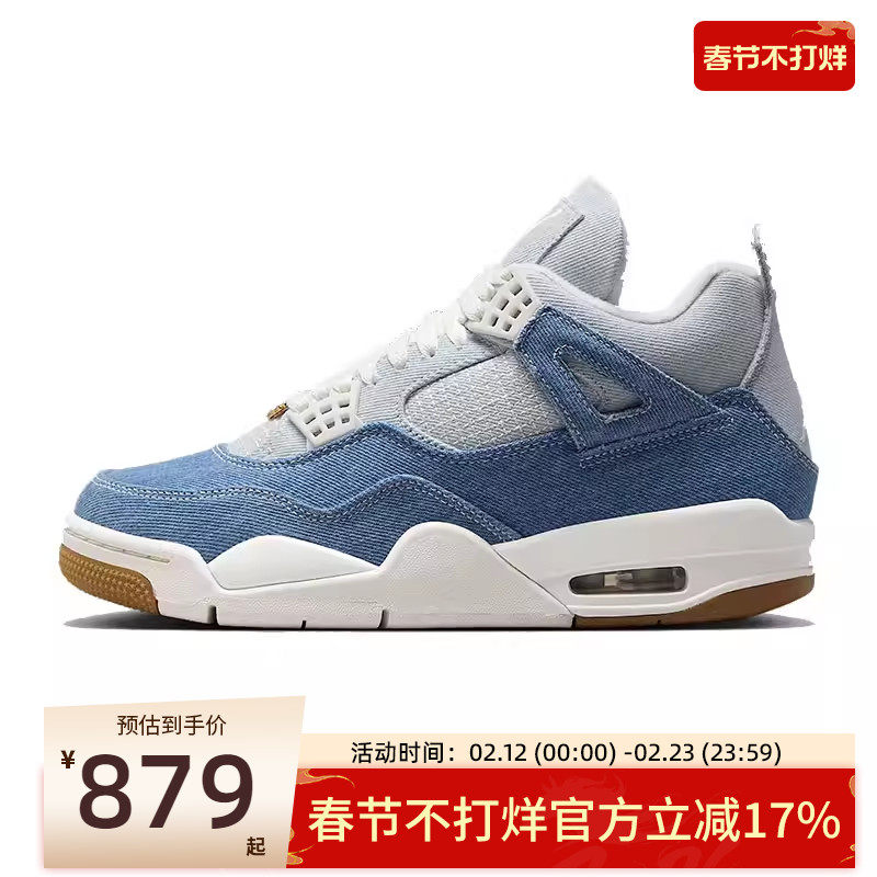 📚 nike耐克女子AIR JORDAN AJ4复刻运动混搭牛仔布休闲鞋IB6716-100
