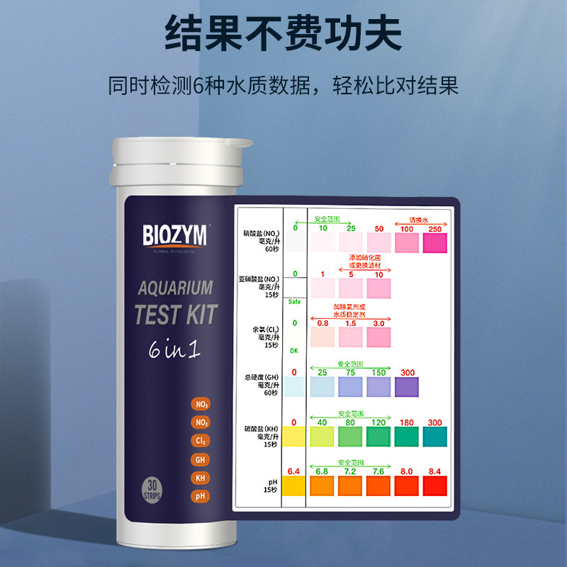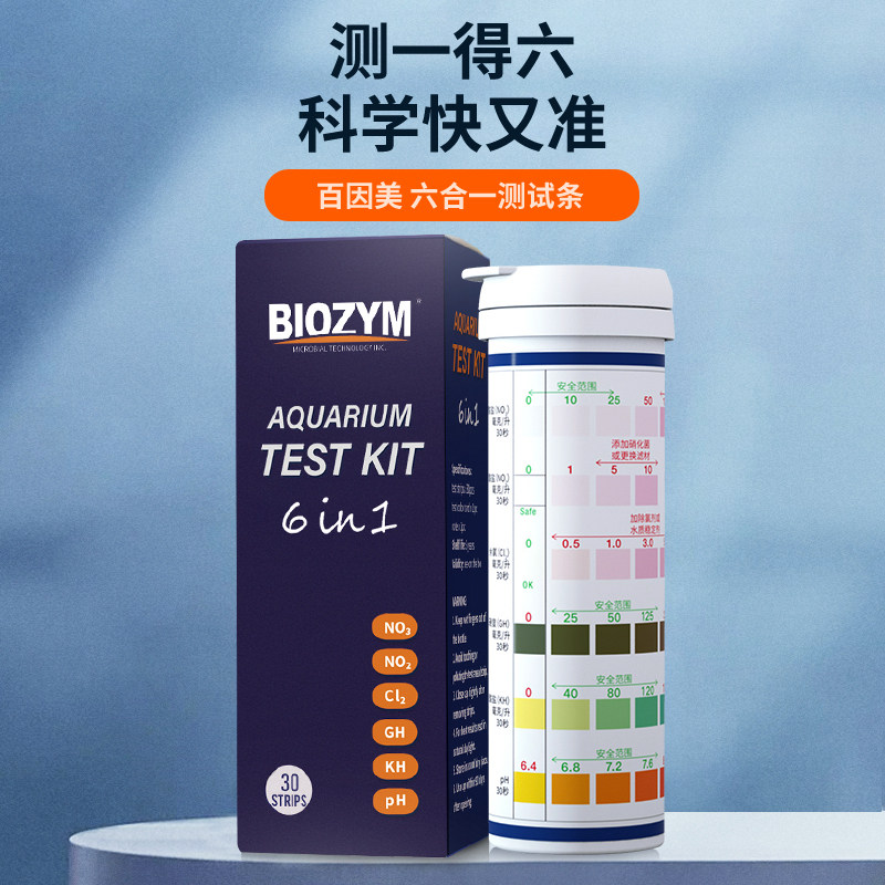 📚 百因美六合一测试剂鱼缸龟缸试纸亚硝酸盐PH余氯水质硬度检测