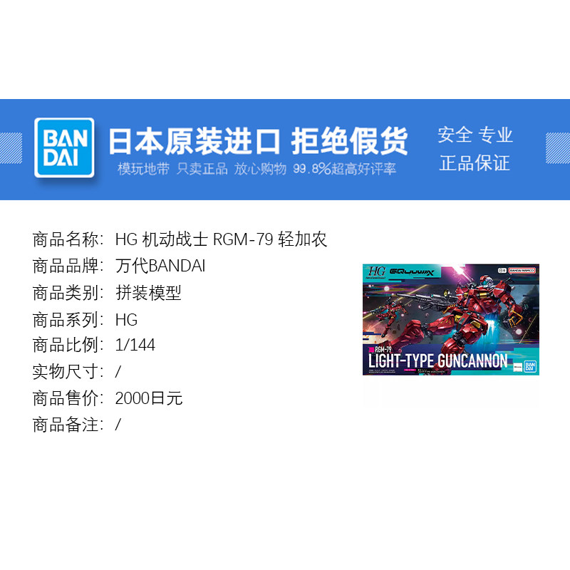 📚 现货 万代 HG 1/144机动战士高达跨时之战RGM-79 轻加农 拼装模型