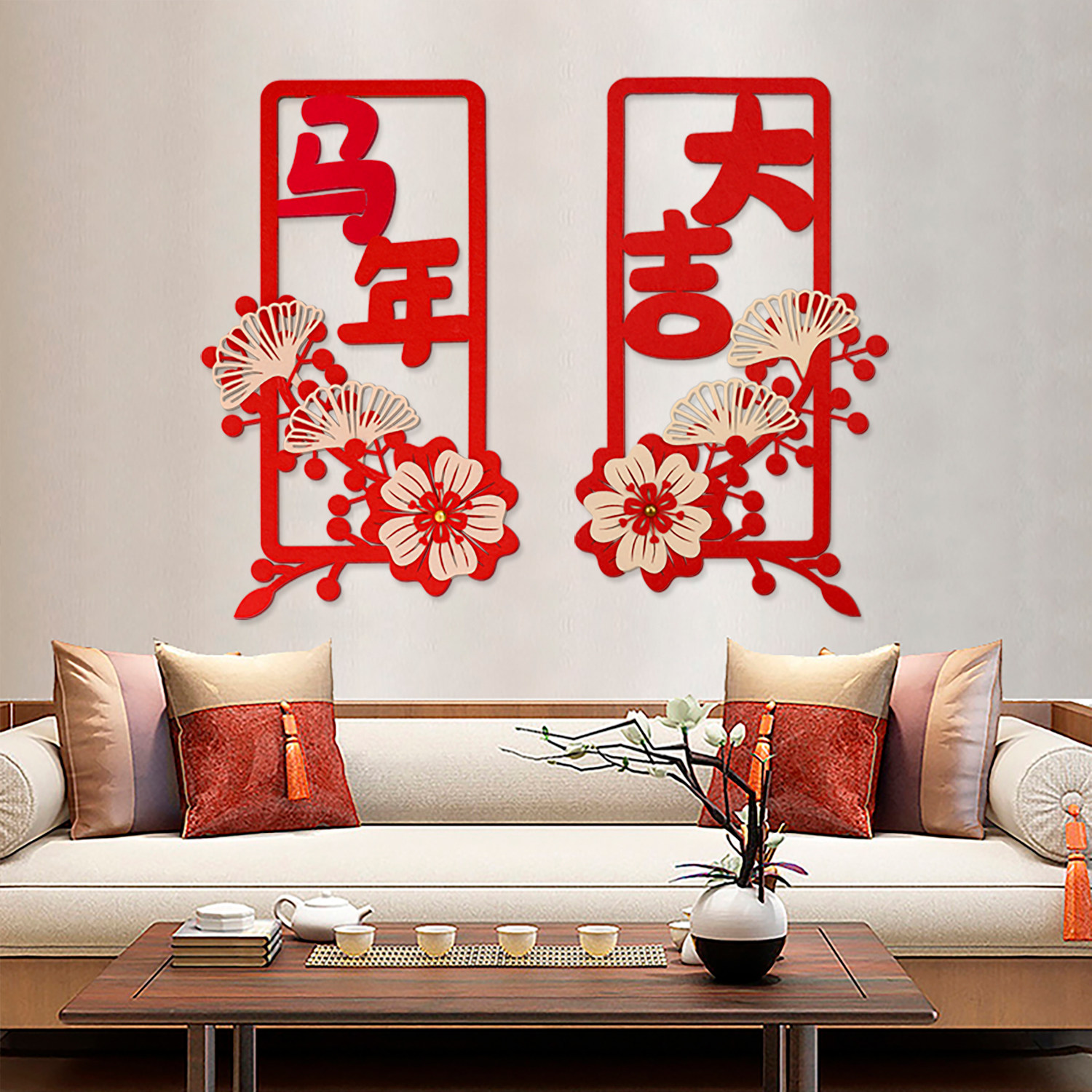 📚 2026马年装饰福字四字小对联过新年春节大门贴窗户立体墙贴布置