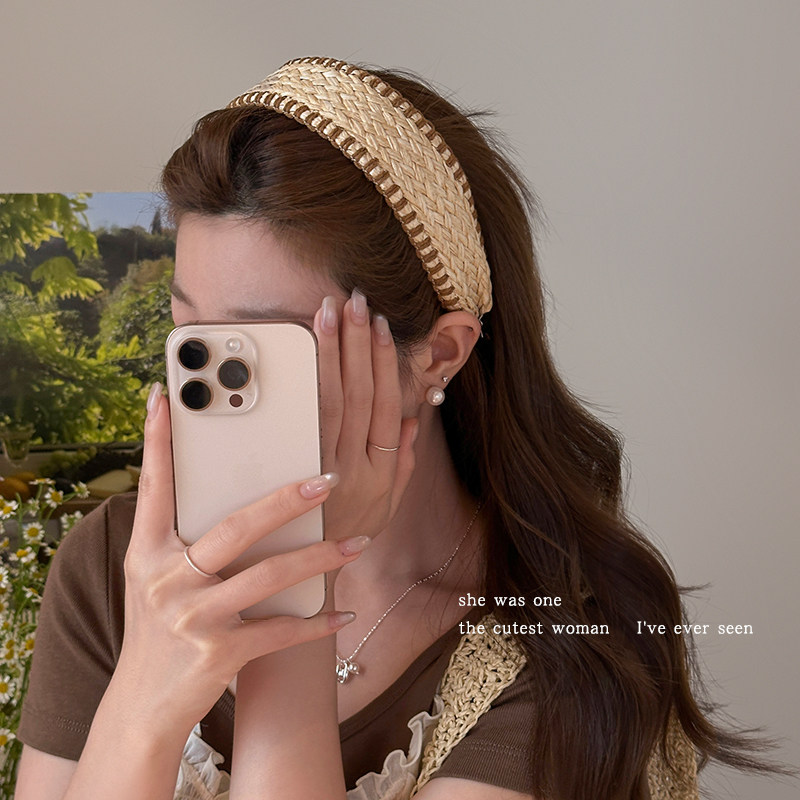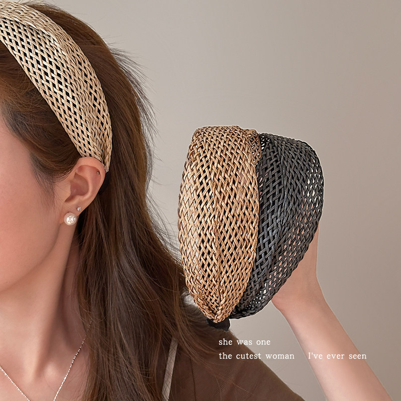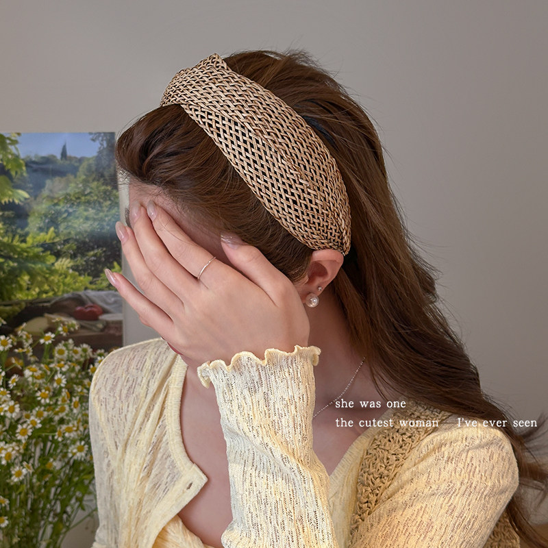 📚 度假风草编宽边发箍女款波西米亚头箍日常外戴发捆高颅顶洗脸发卡