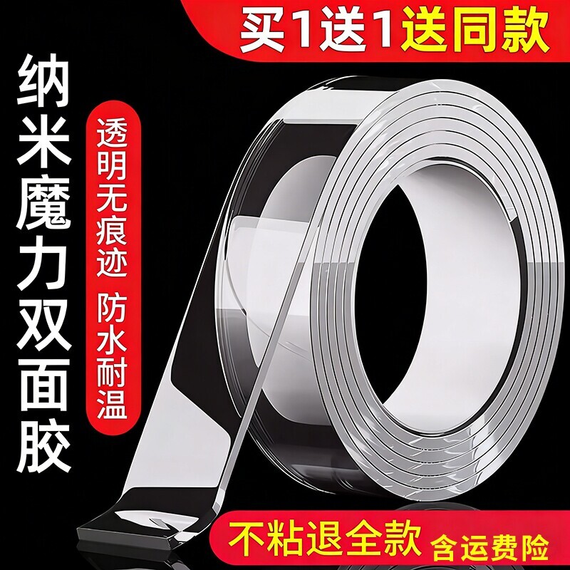📚 纳米双面胶高粘度强力双面贴固定墙面超强防水车用粘胶贴片无痕透明胶带魔力贴强力粘双面不留痕胶贴胶布粘贴