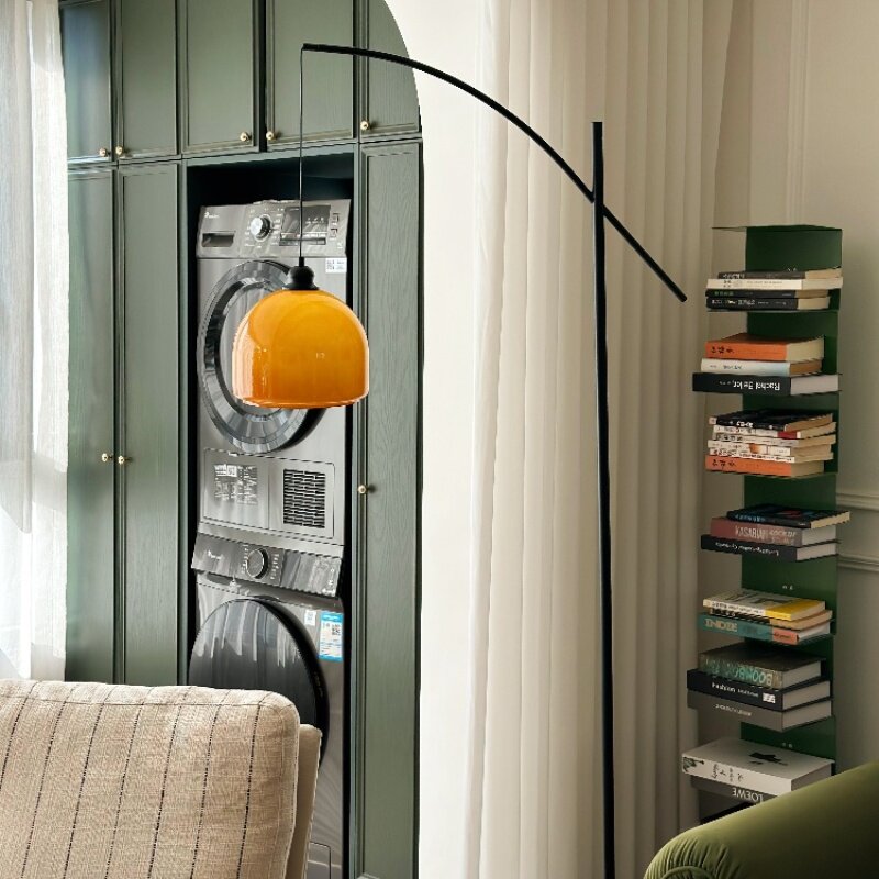 📚 中古风日落橙落地灯客厅沙发旁卧室床头灯简约现代创意立式钓鱼灯