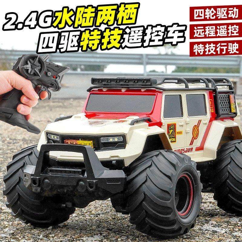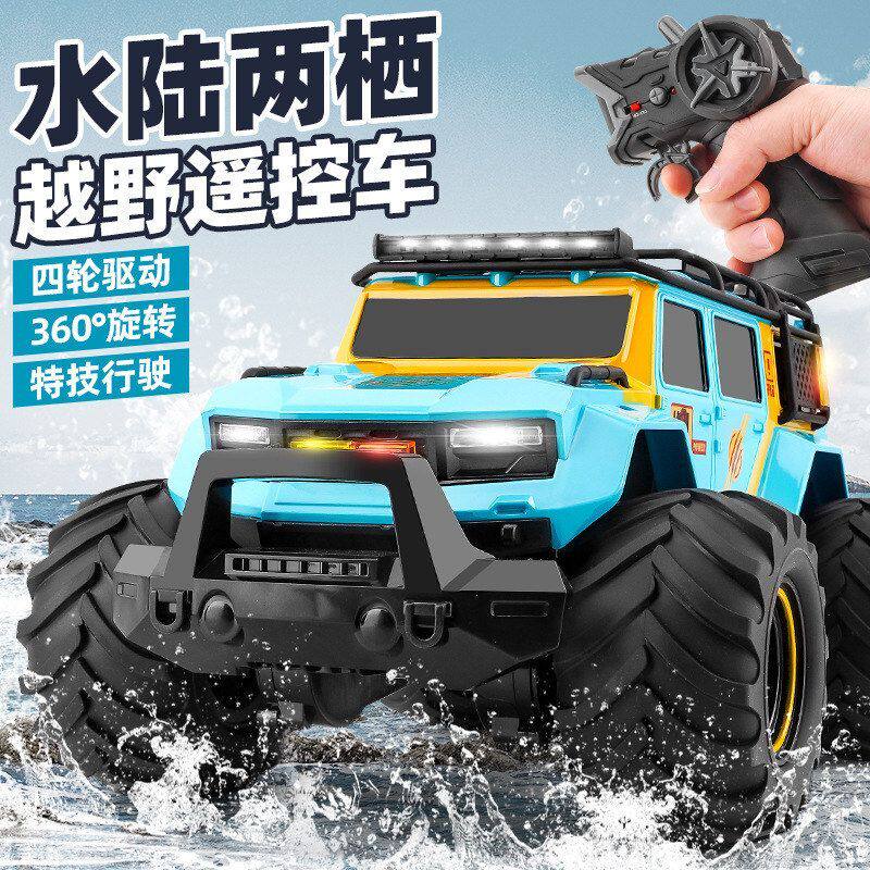 📚 跨境水陆两栖遥控车四驱越野车儿童玩具灯光音乐防水RC遥控攀爬车