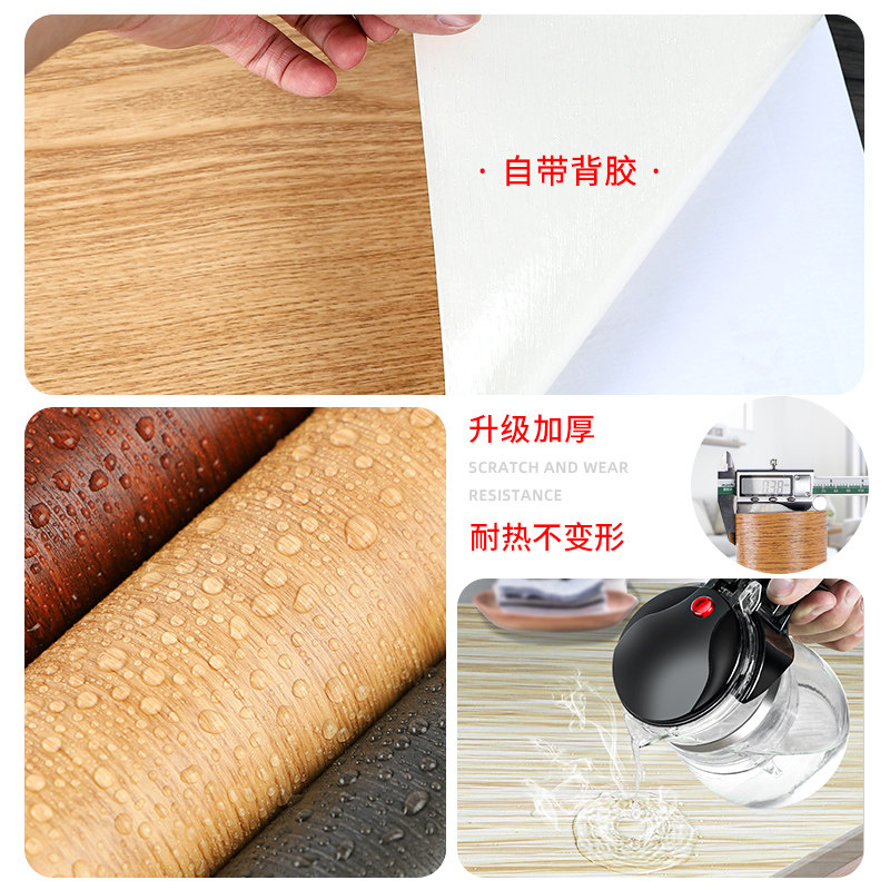 📚 黄色加厚木纹贴纸自粘墙纸家具翻新衣柜柜子木板木门桌面防水仿木