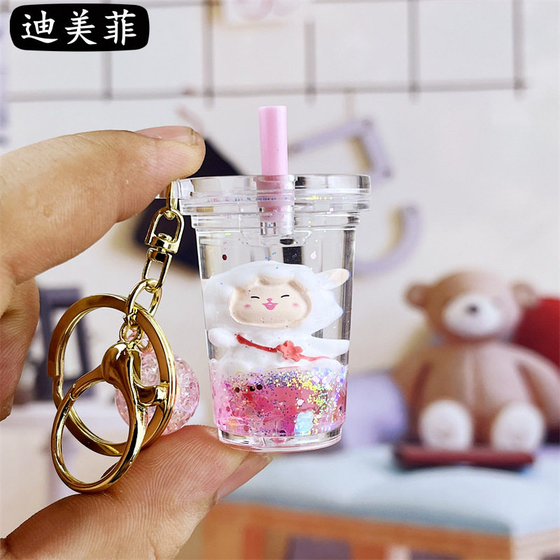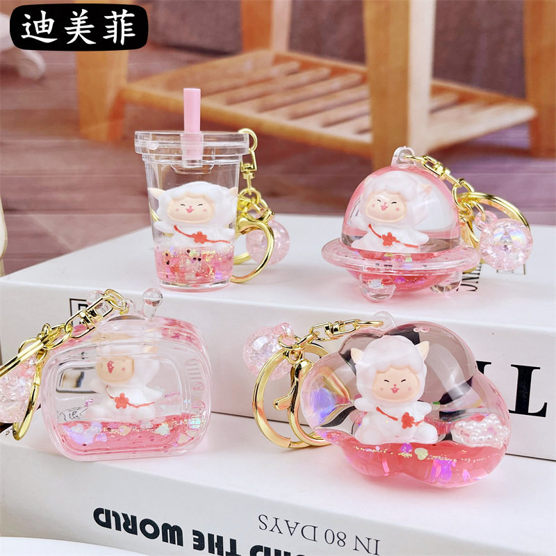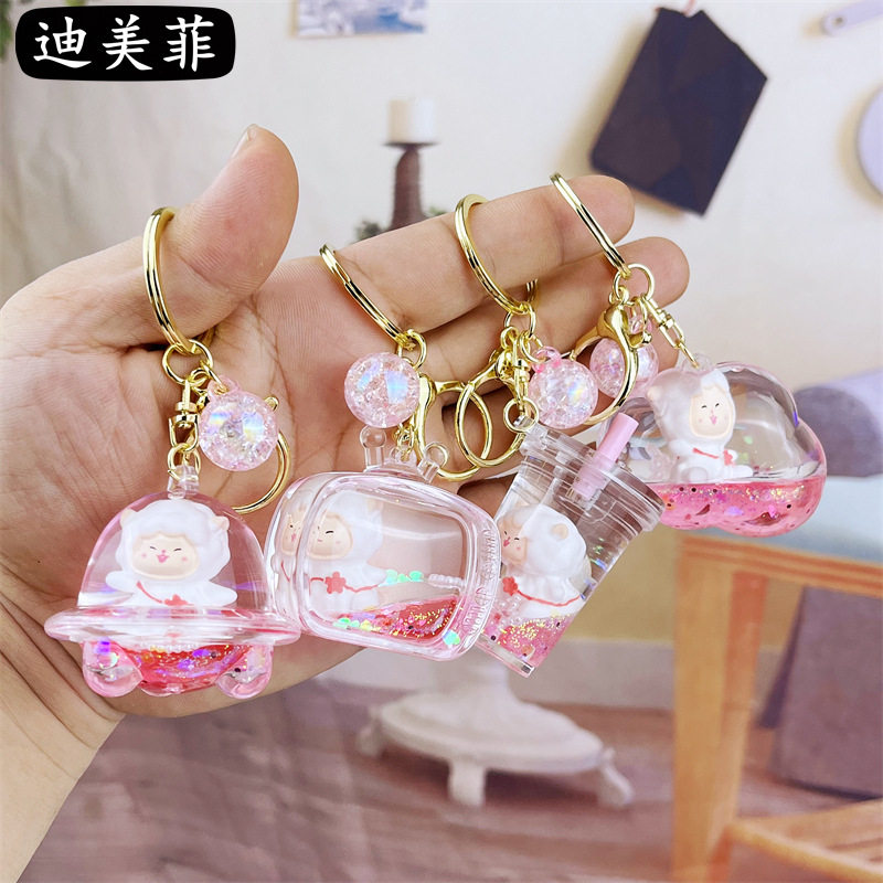 📚 入油小白羊钥匙扣可爱流沙汽车挂件可爱情侣包包亚克力小礼品