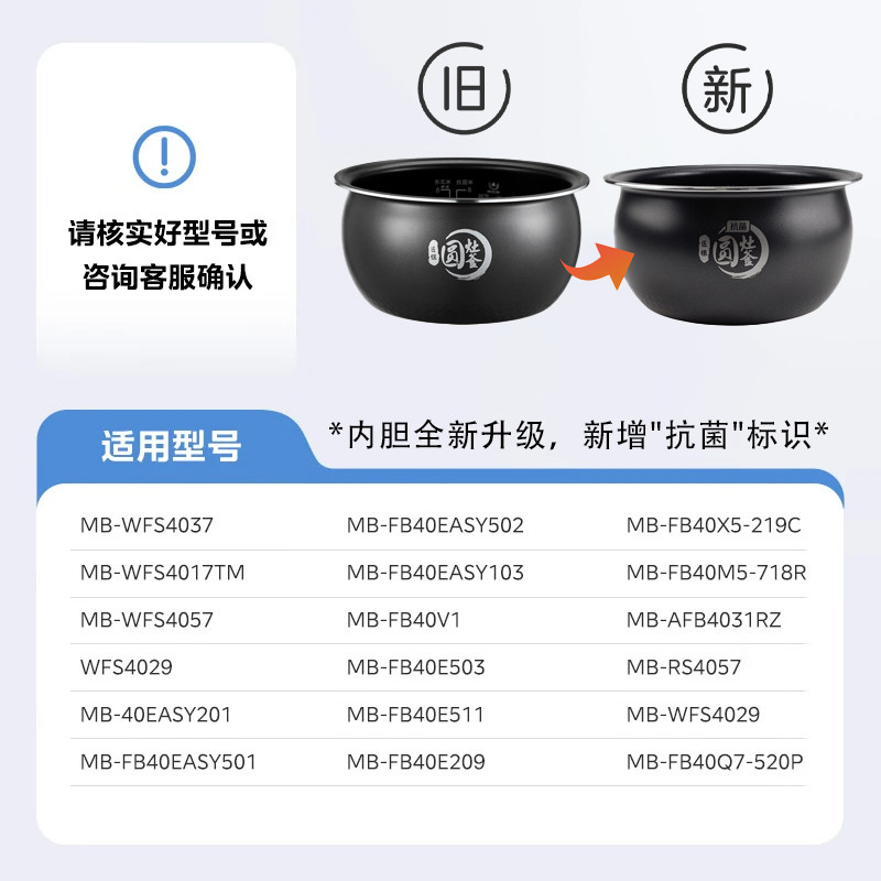 📚 Midea/美的 MB-WFS4017TM电饭煲内胆4升圆灶釜FS4018TM正品不粘锅