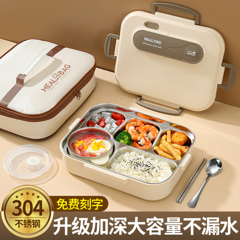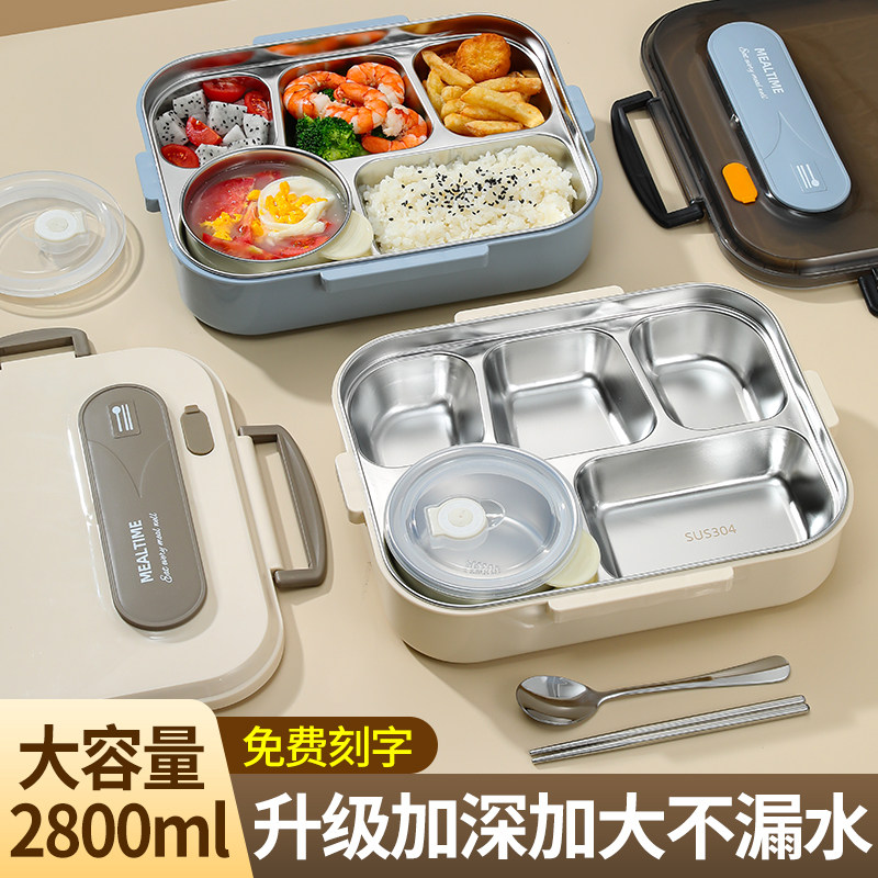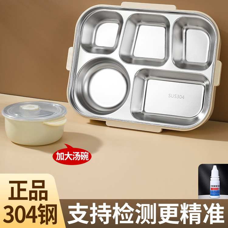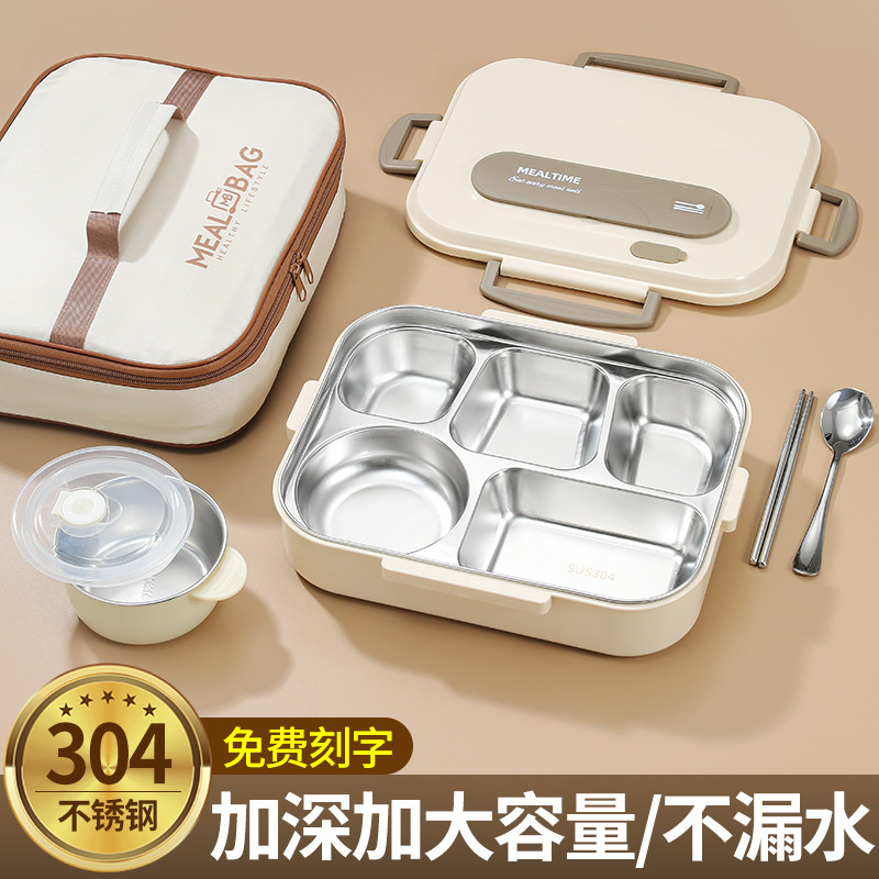 📚 正品304不锈钢 大号五格饭盒带汤碗成人大容量上班族保温学生餐盒