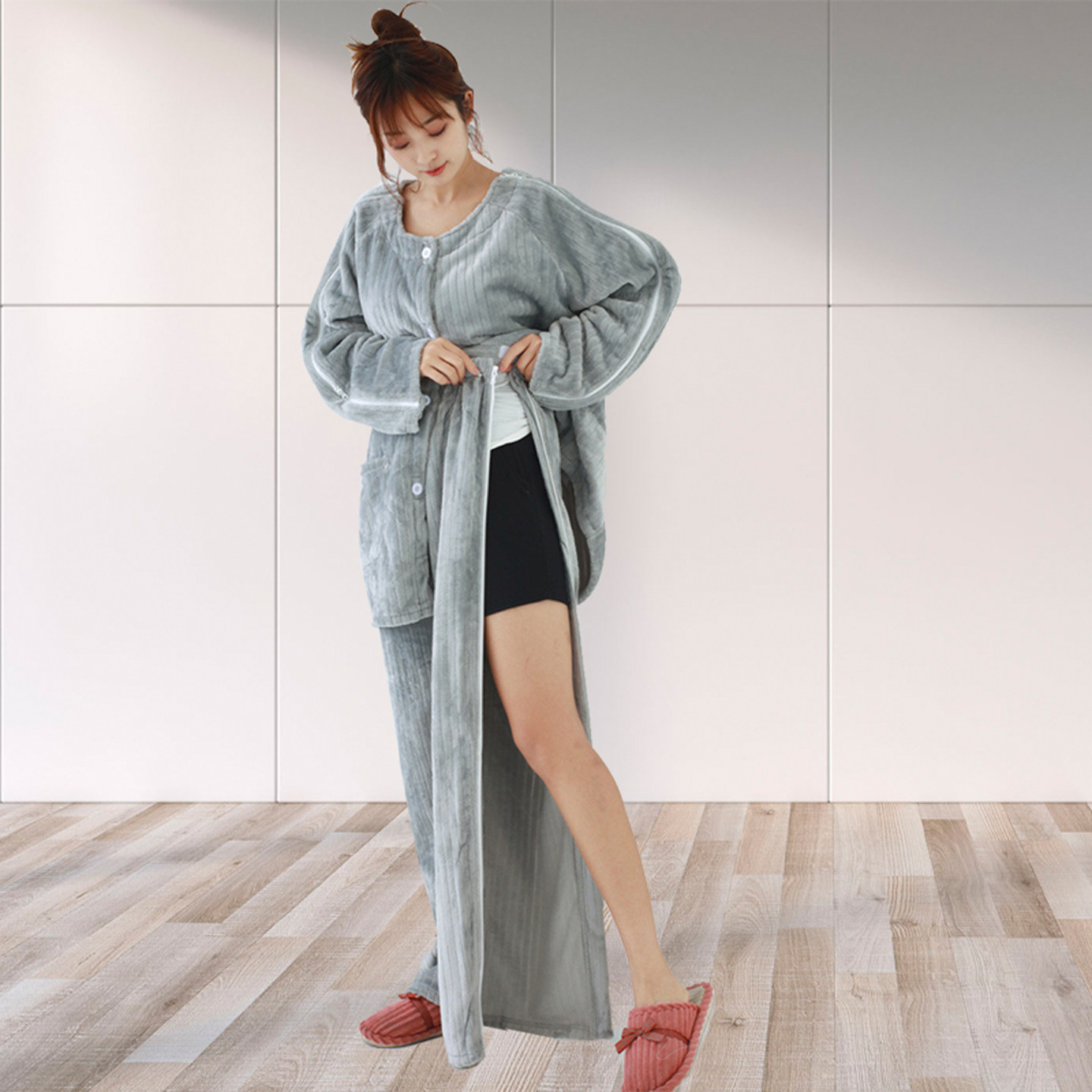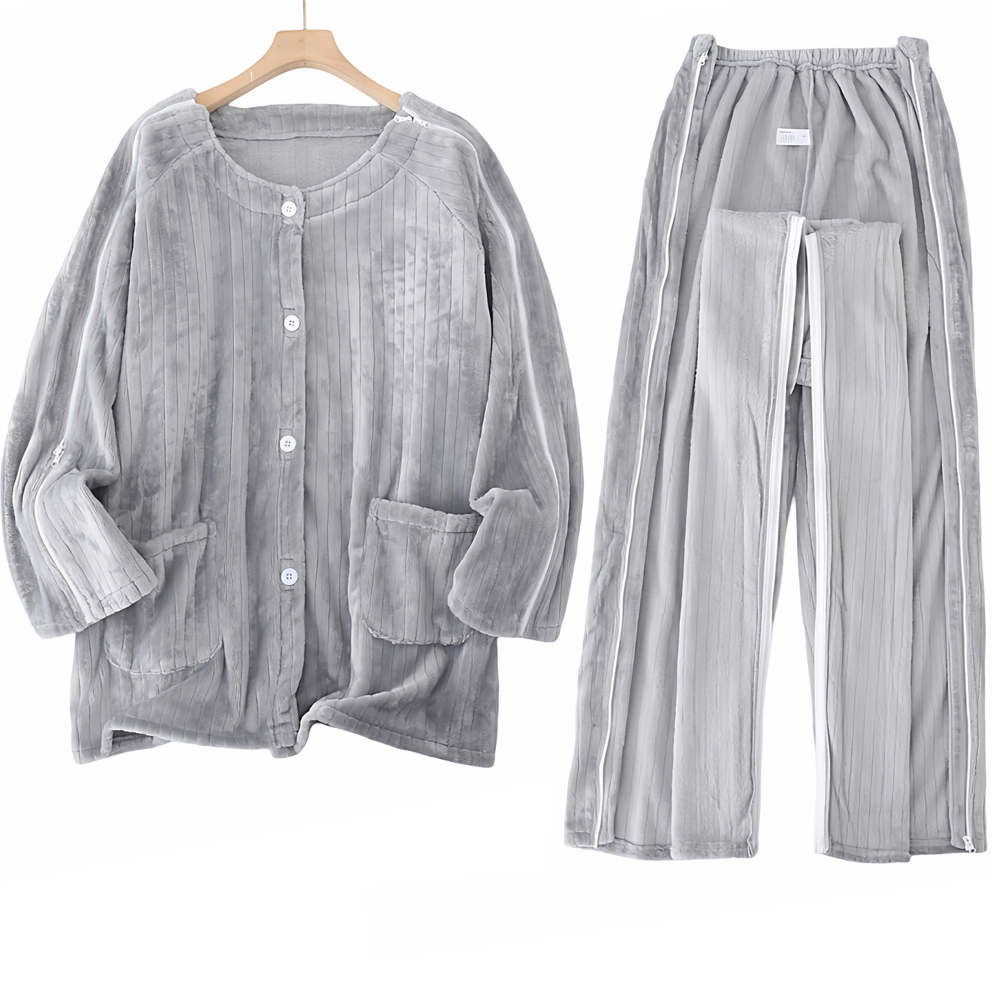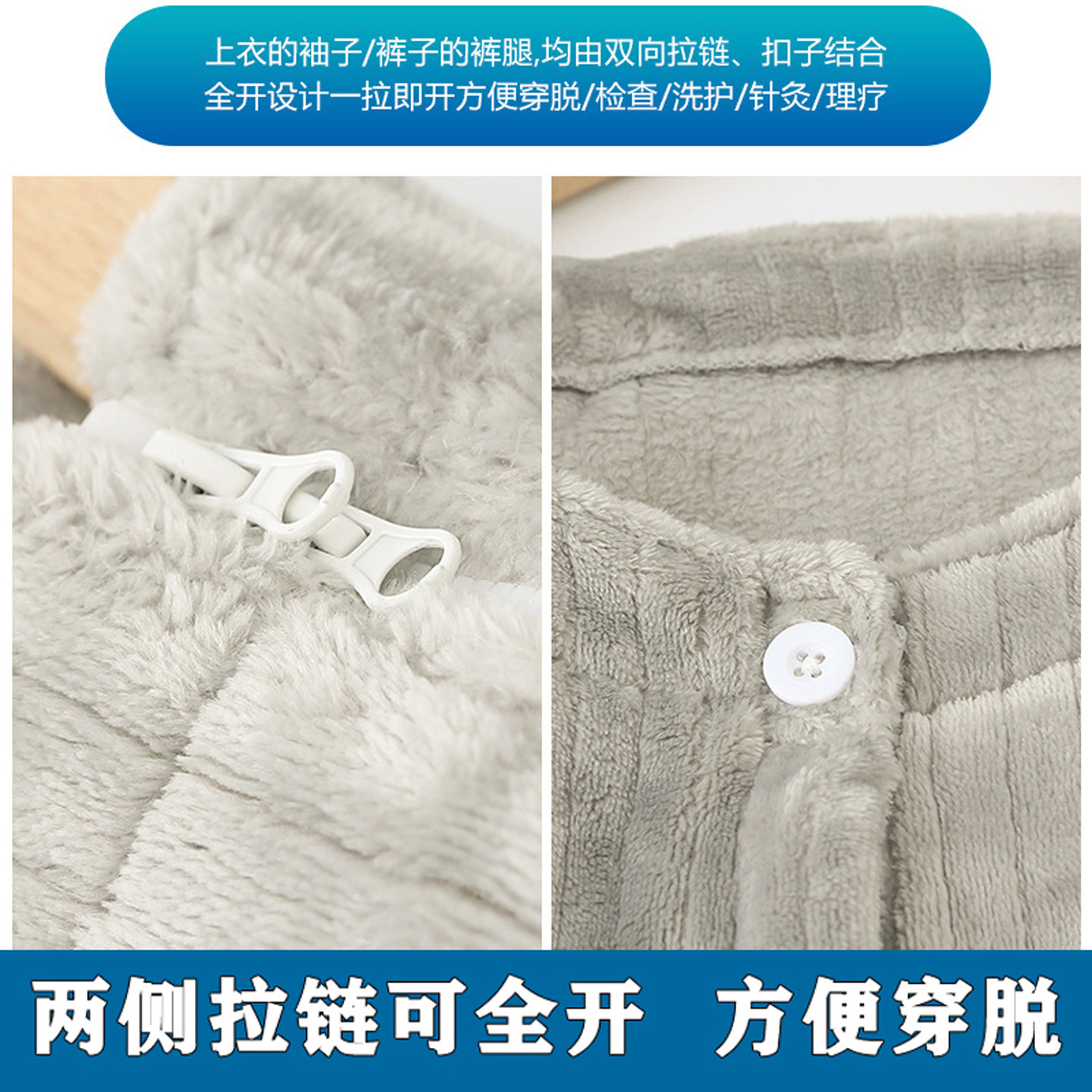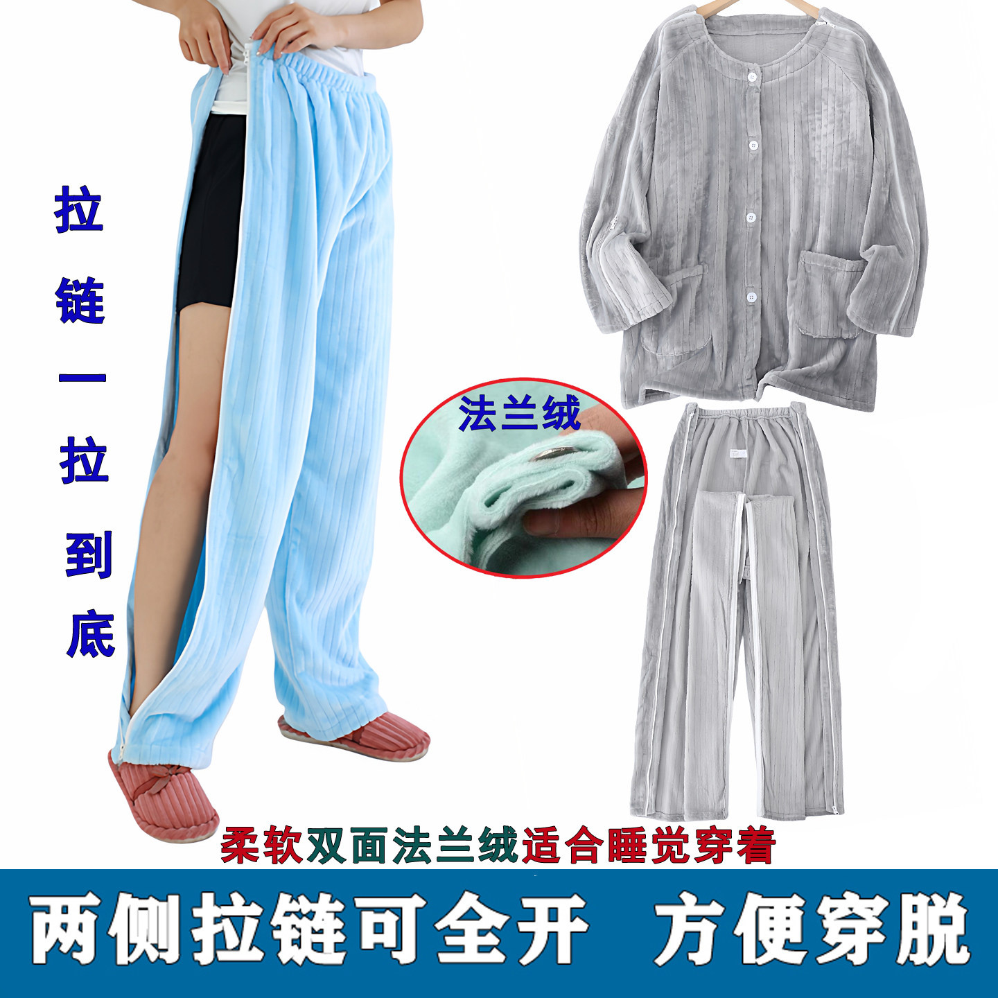 📚 法兰绒睡裤男女两侧拉链裤骨折棉裤中老年人卧床护理服保暖家居裤