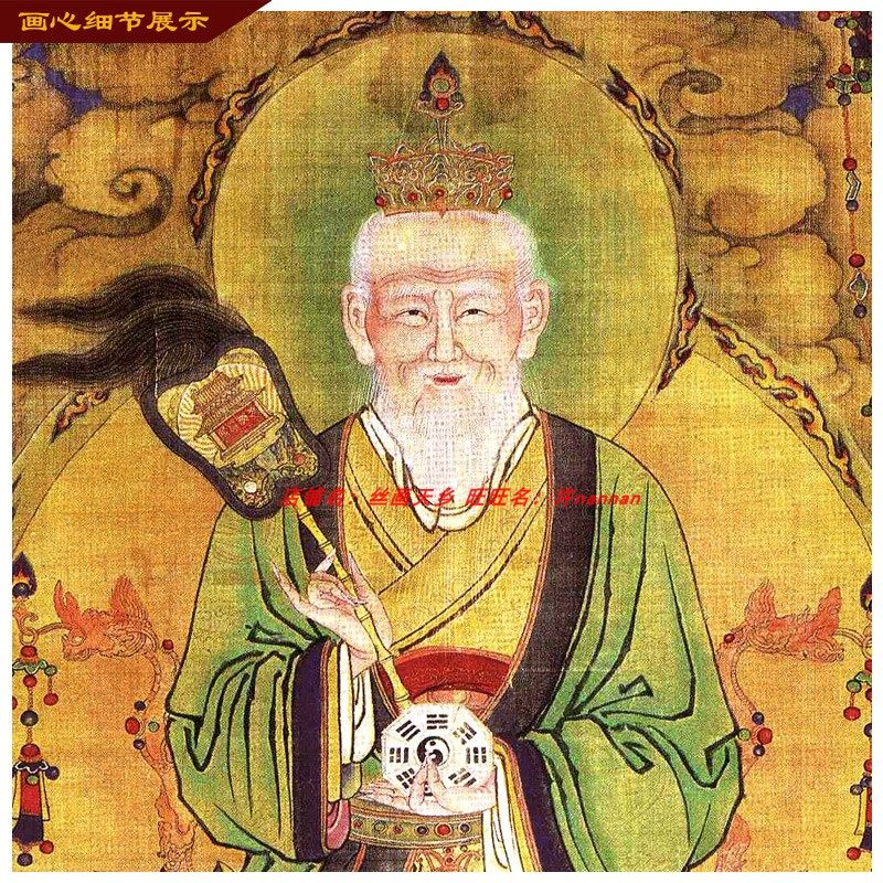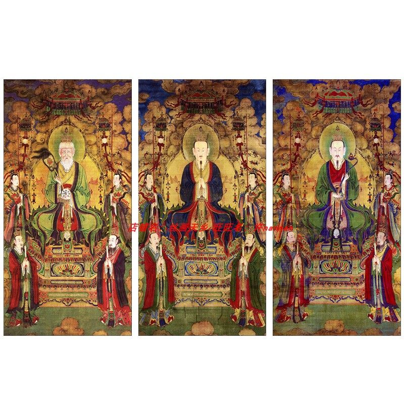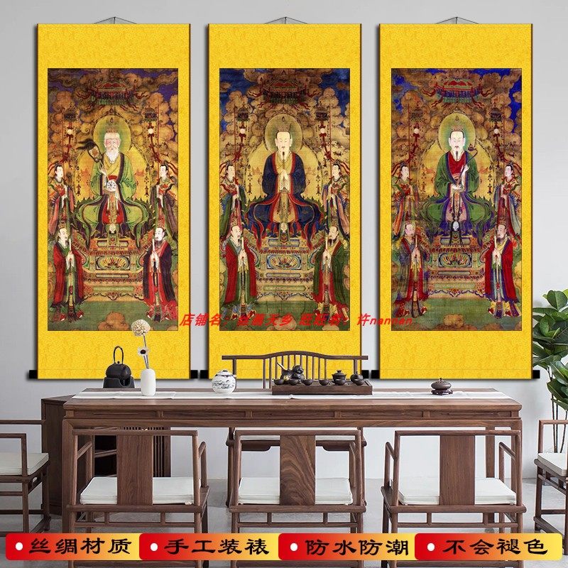 📚 三清画像挂画祖师爷道德灵宝元始天尊道家装饰画丝绸卷轴画已装裱