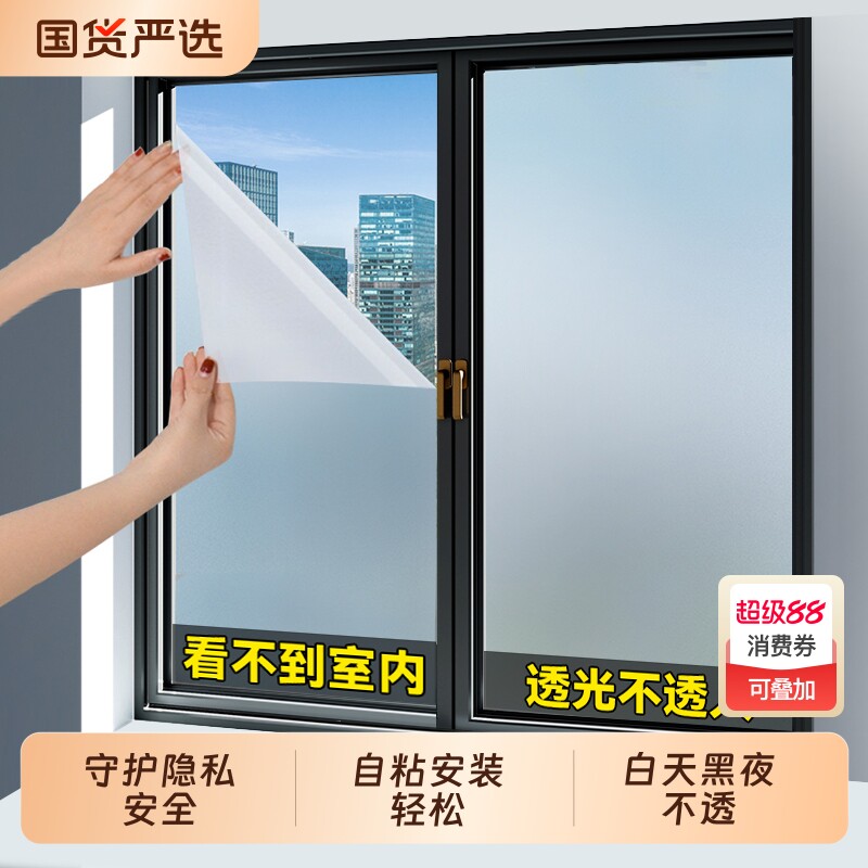 📚 防窥磨砂玻璃贴纸透光不透明窗户卫生间浴室门遮光防揍贴膜防爆