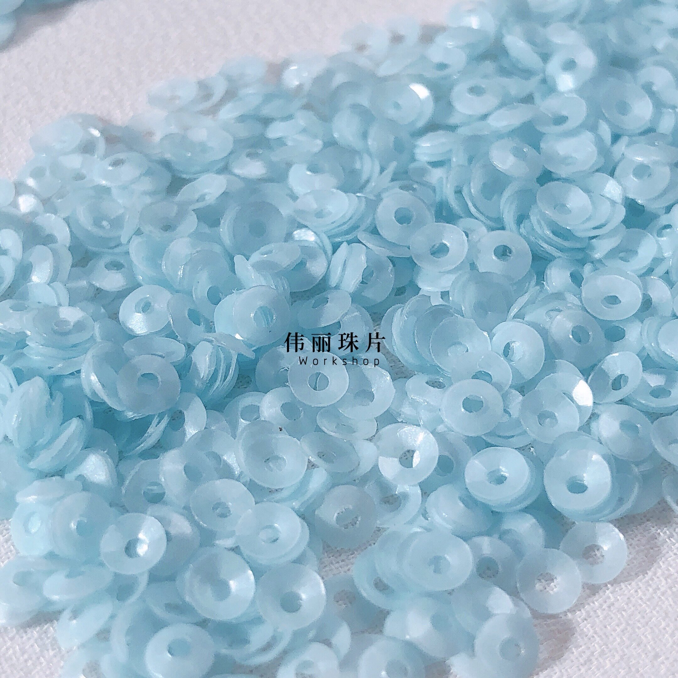📚 磨砂水蓝色亮片3/4/5/6mm系列【PL996】法式刺绣 辅料PET手缝珠片