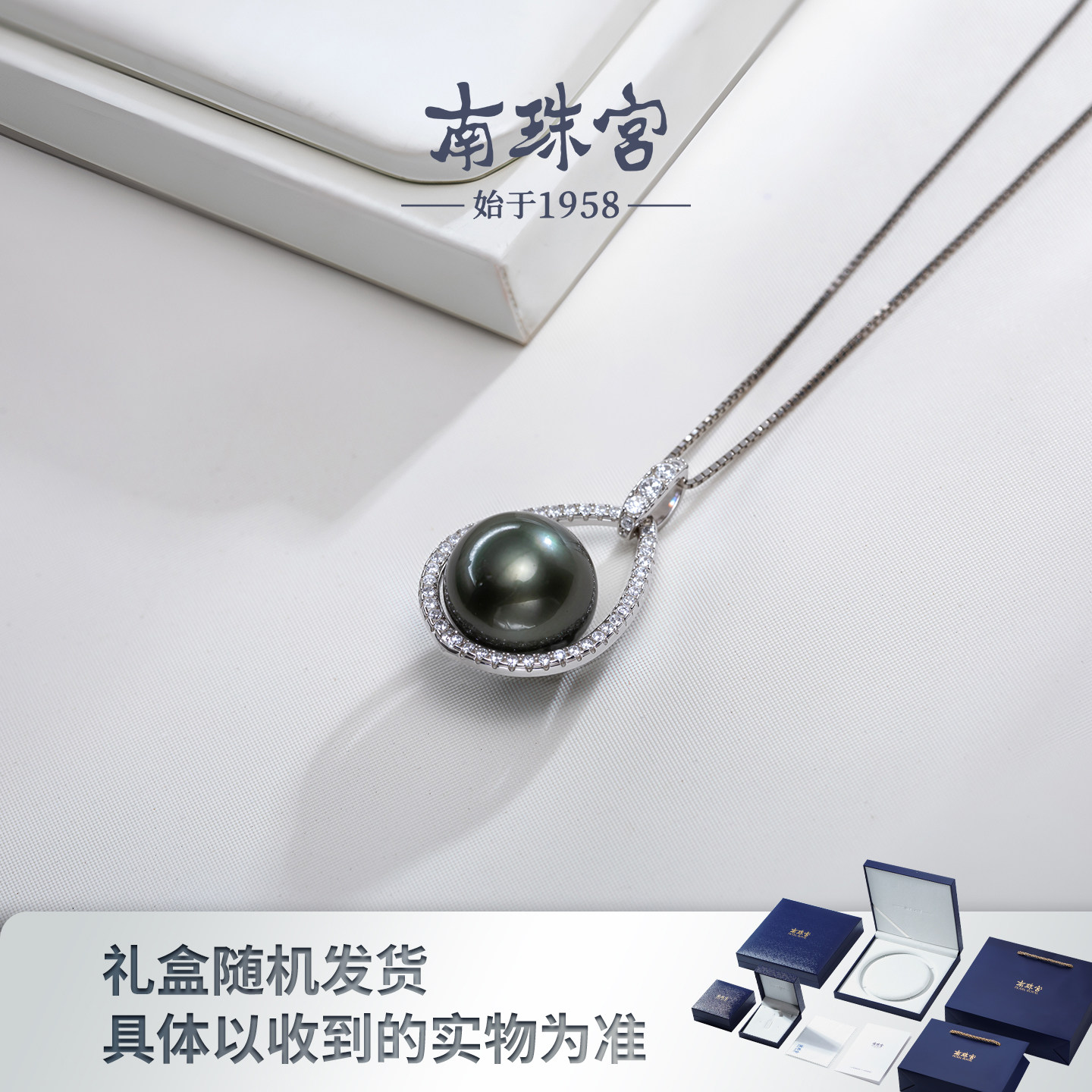 📚 南珠宫大溪地黑珍珠吊坠南洋金珠海水珍珠项链优雅百搭送女友