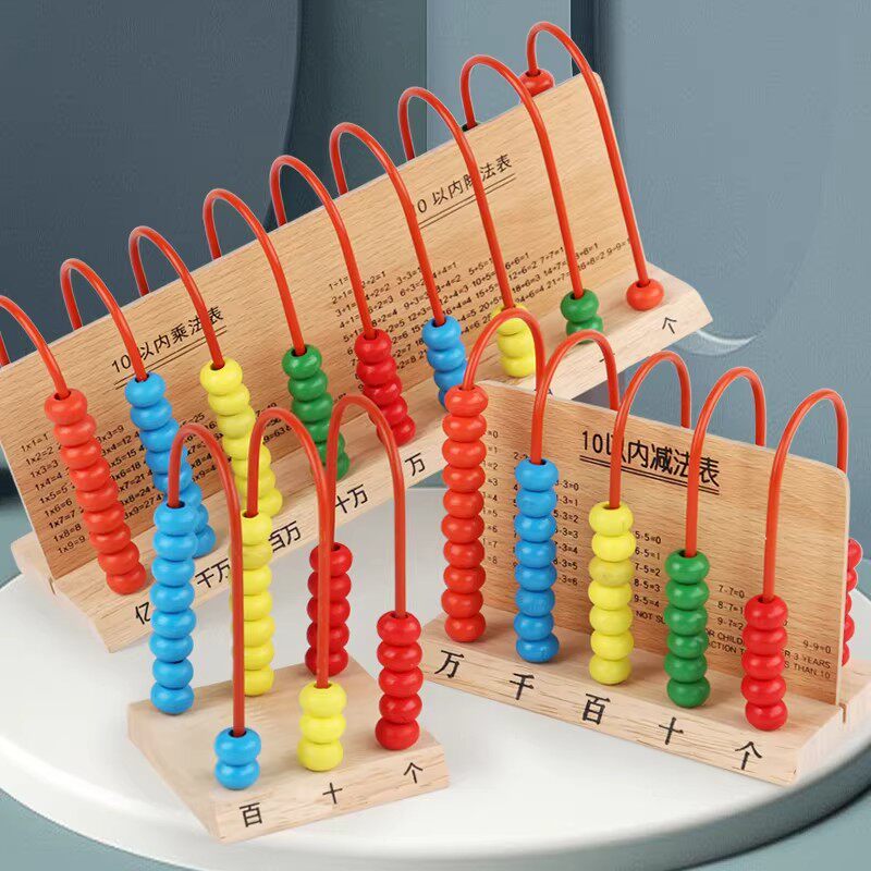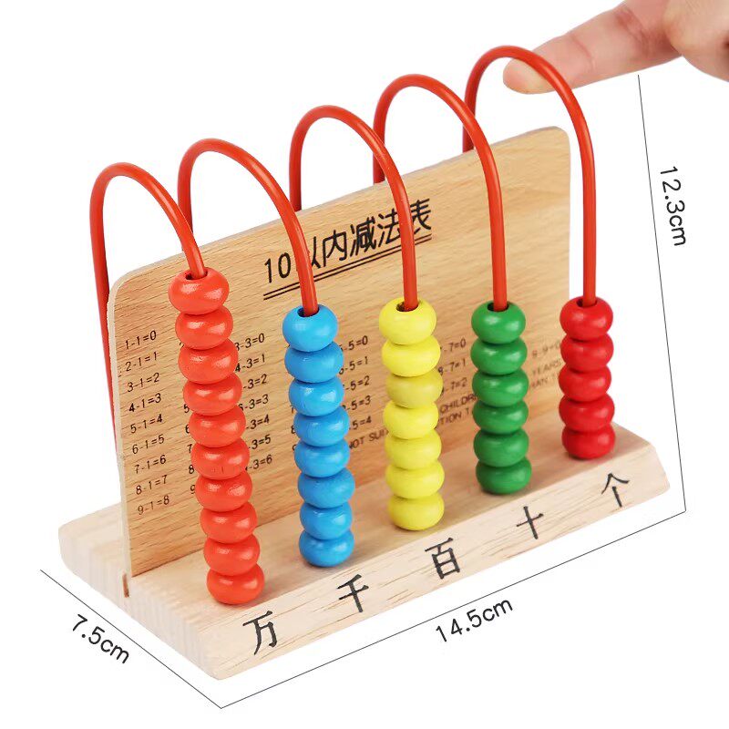 📚 五档计数器小学一二年级上下册数学教具珠算架万位五行计算架木质