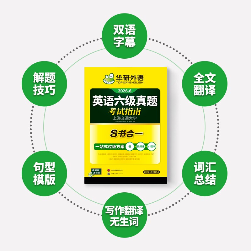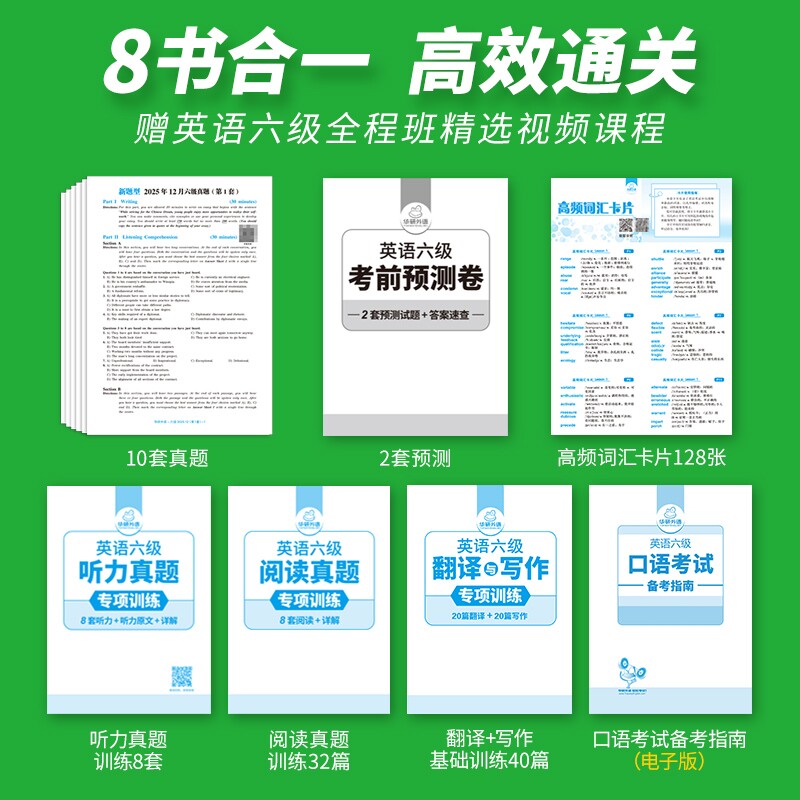 📚 华研外语英语六级真题试卷备考2026年6月大学英语四六级考试词汇单词书阅读理解听力翻译写作文预测专项训练习题资料cet6口语淘金