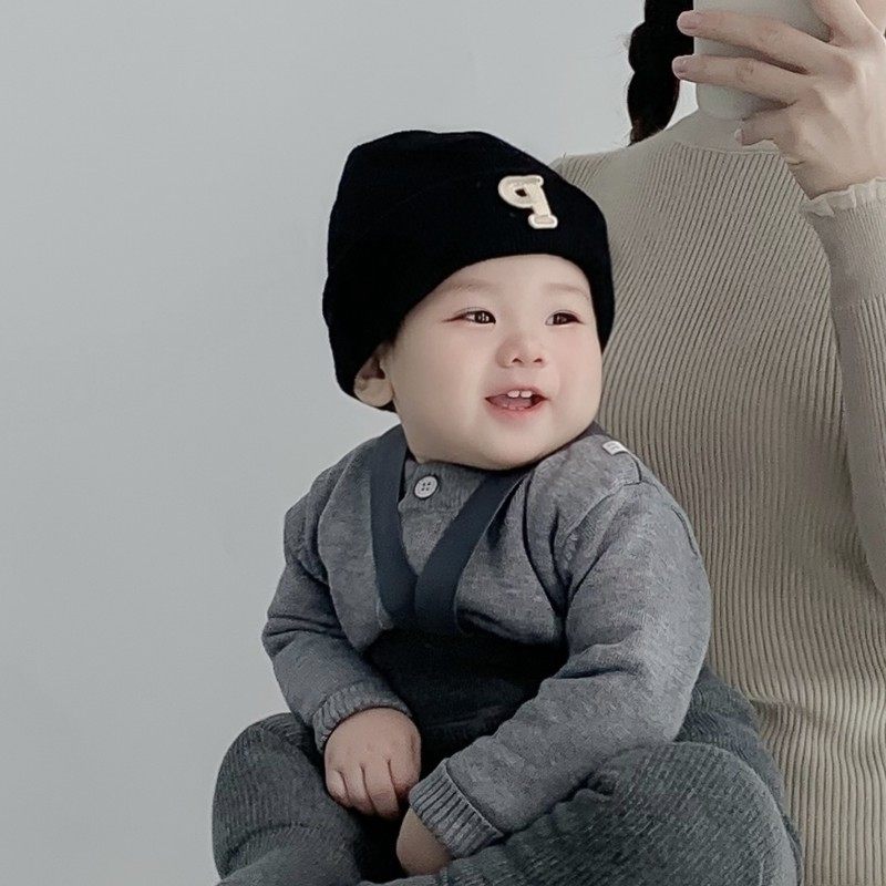 📚 婴儿帽子秋冬季韩版男孩字母针织帽冬天新生小月龄宝宝保暖毛线帽
