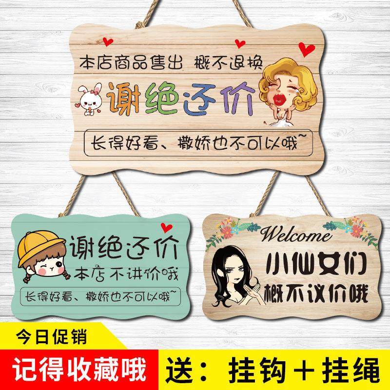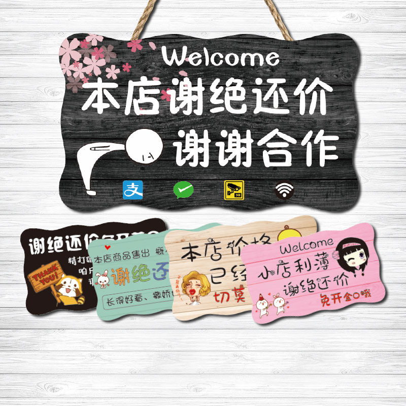 📚 谢绝还价创意挂牌新品上市概不退换提示牌子服装店不讲价个性定制